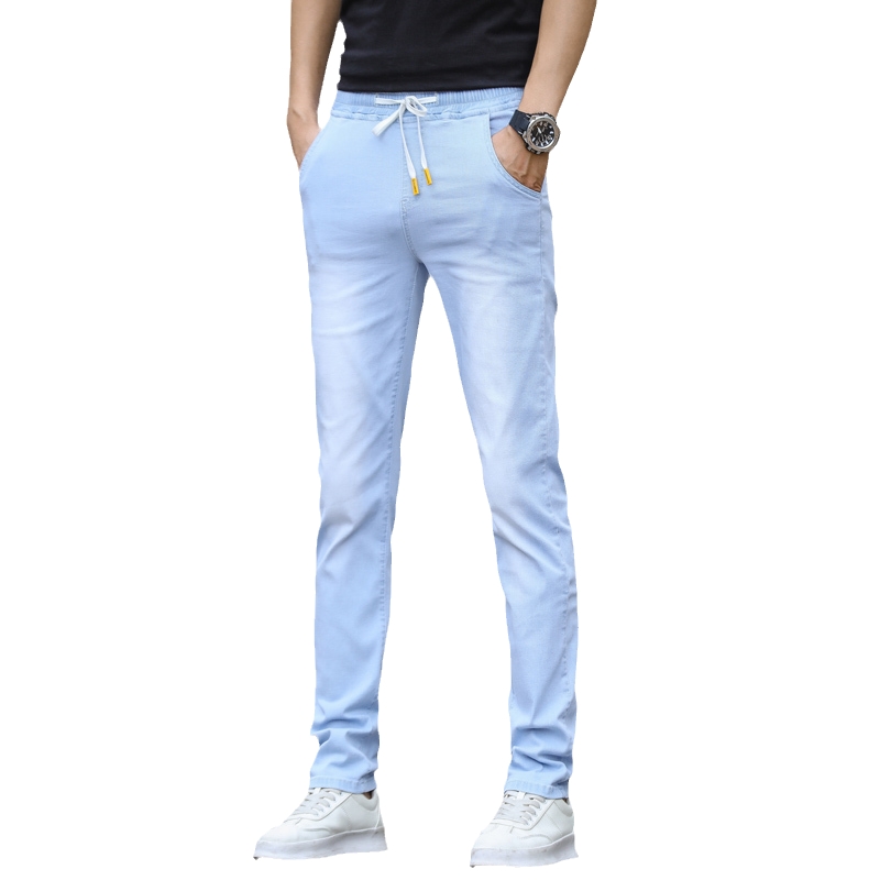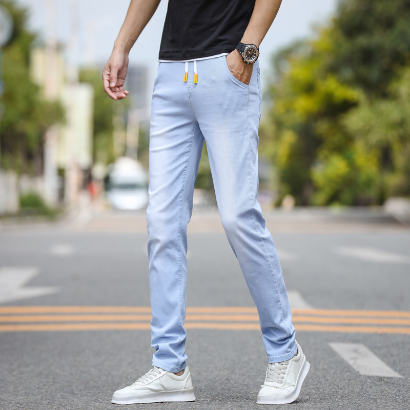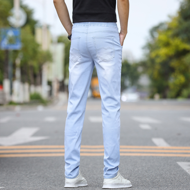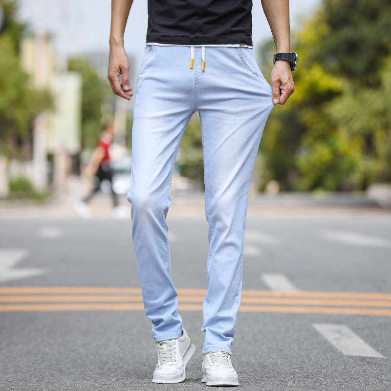 Spring and autumn new light-colored jeans men's elastic slim waist pants boys Korean version straight trousers
