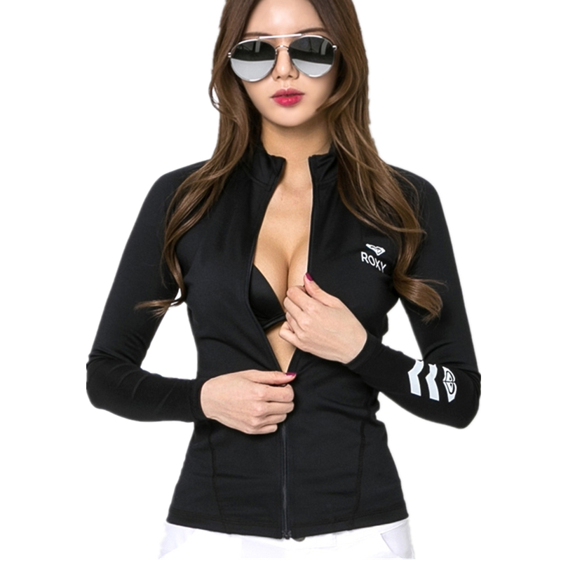 Women's black and white logoA women's black top white logo women's dark blue top yellow logo women's black top red logo women's light blue top red logo women's rose