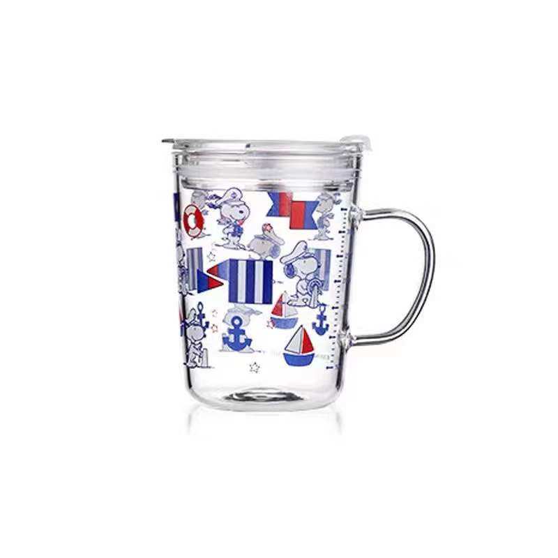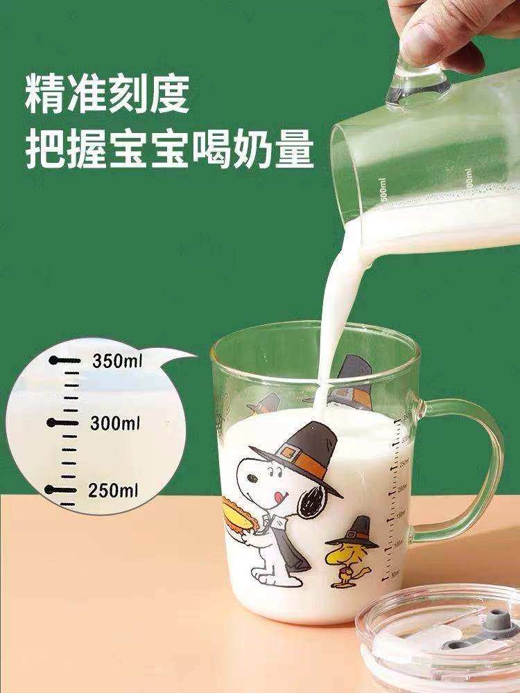 Snoopy baby milk cup with scale glass cup microwave oven heating children's milk straw cup household water cup