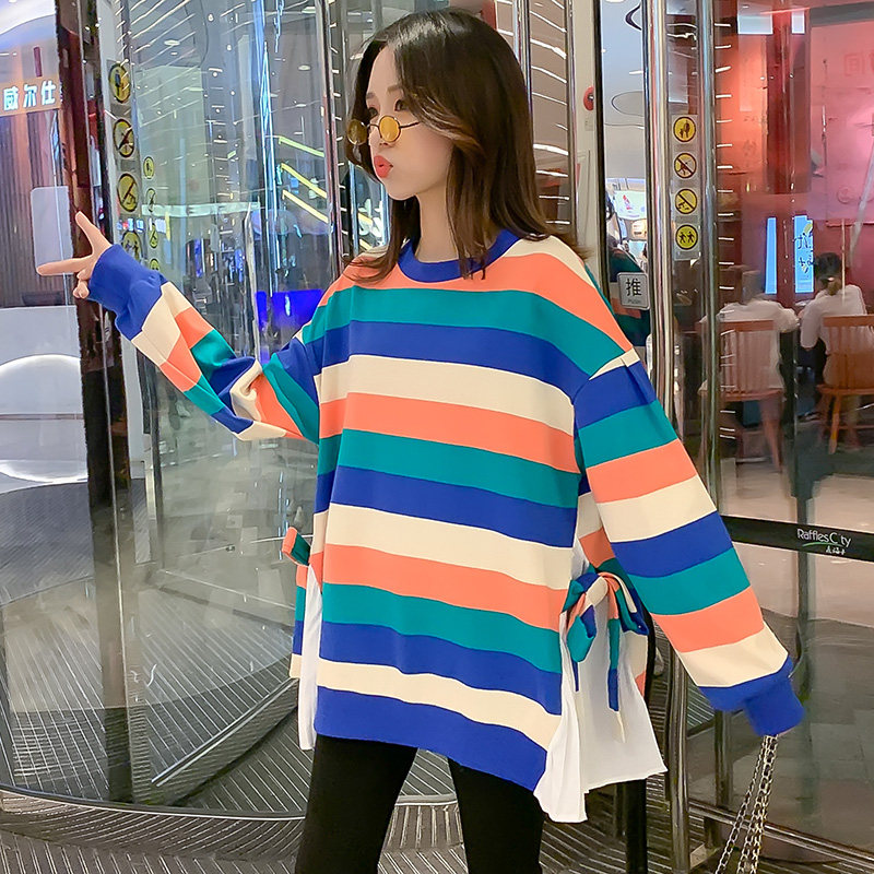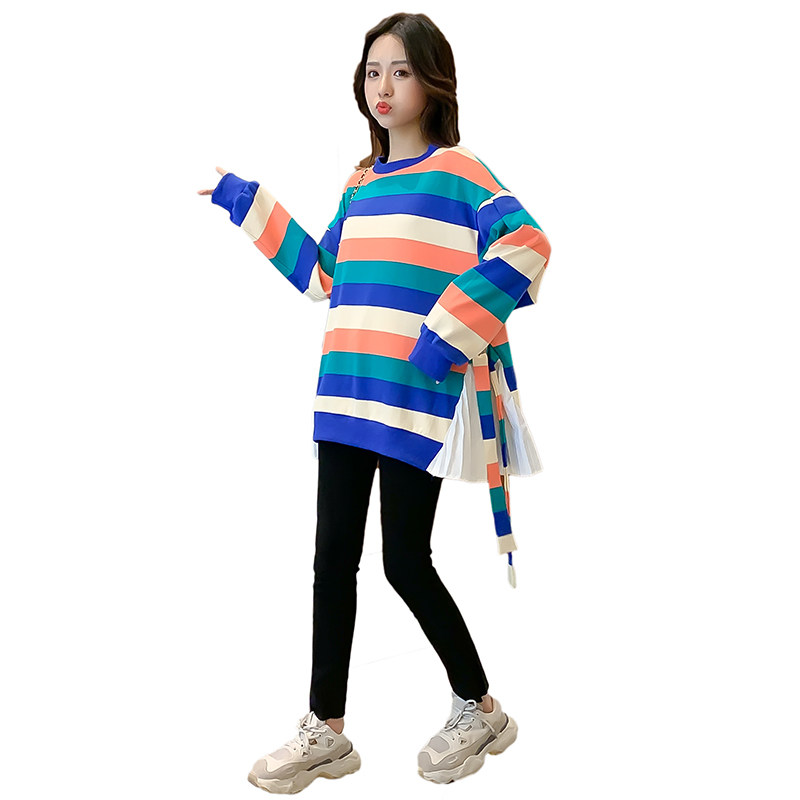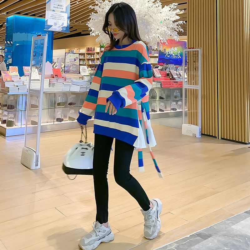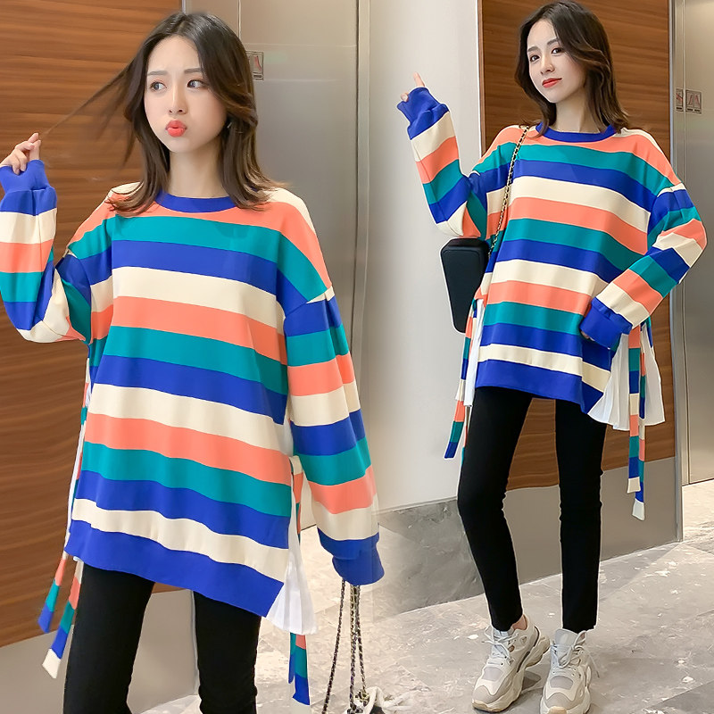 Pregnancy woman dress for autumn clothing Korean version striped sweatshirt loose with 100 hitch blouse autumn winter thickened outside wearing long sleeve t-shirt
