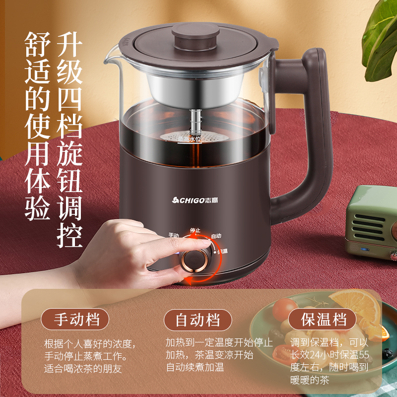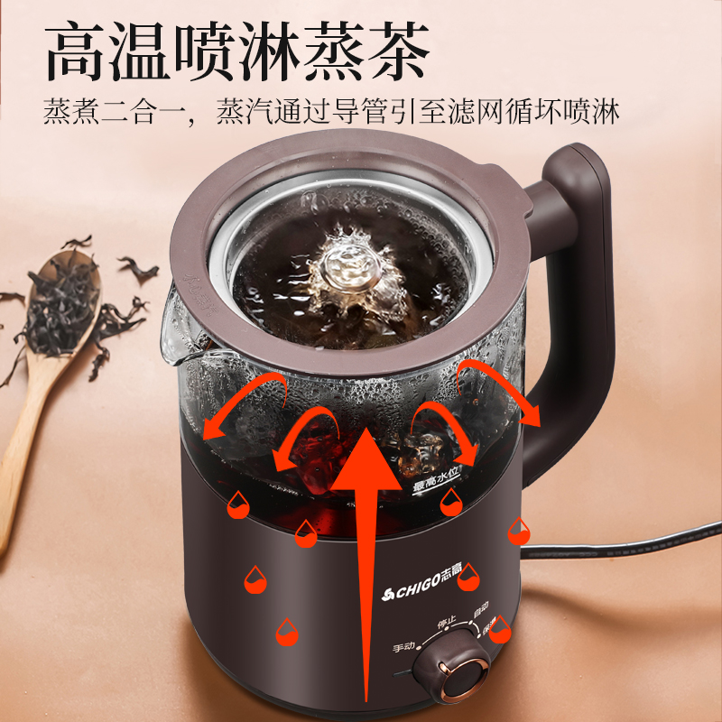 Zhigao tea maker Household automatic insulation health pot Glass Black tea Pu'er spray type steamed tea cooking teapot