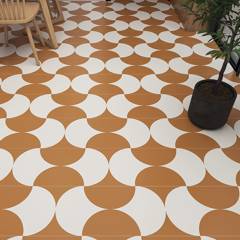Half round orange mesh red brick stadium pool garden anti - slip floor tile dining room balcony floor tile 300