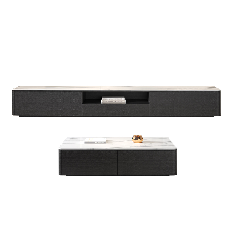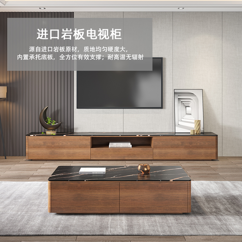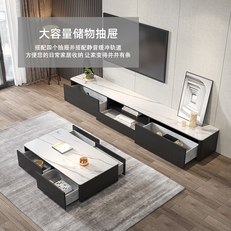 Rock board Nordic TV cabinet coffee table combination modern minimalist size apartment minimalist hollow black Italian floor cabinet