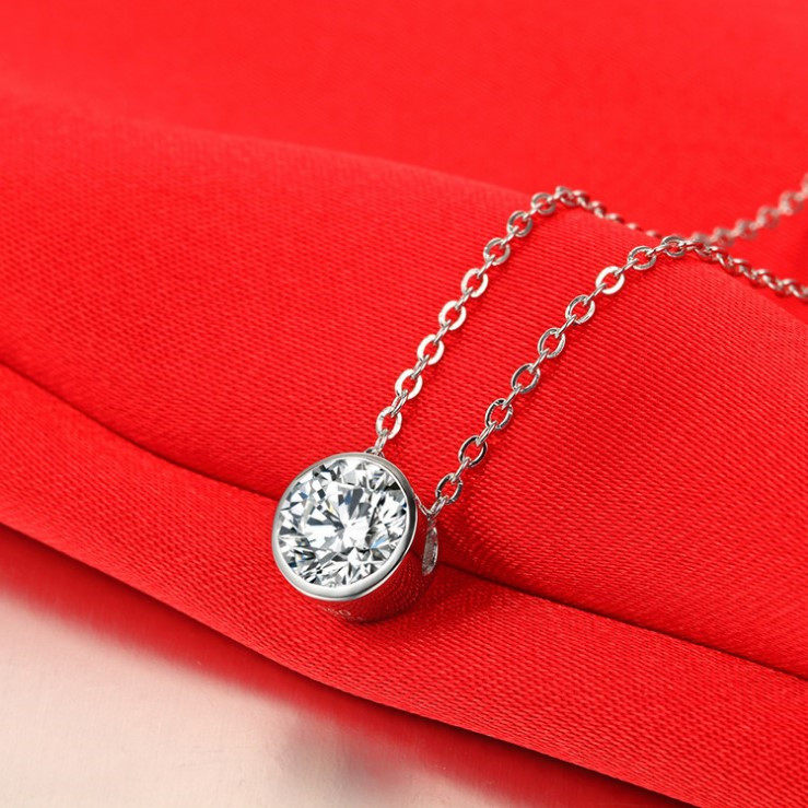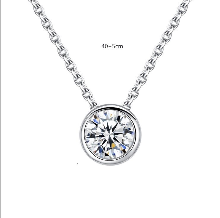 AU 750 Platinum Mozan Diamond 18K Platinum Necklace female Round Diamond Mozambique Diamond 1 carat single drill