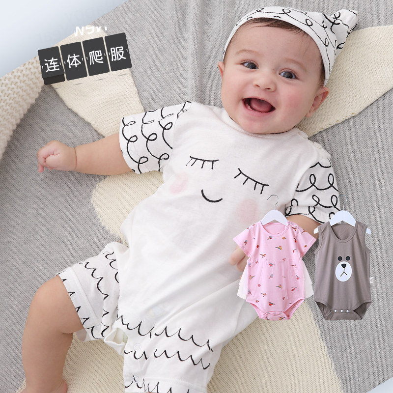 Baby Jumpsuit Summer Thin Newborn Air Conditioning Clothes Baby Cotton Summer Dress Romper Triangle Climbing Summer Pajamas