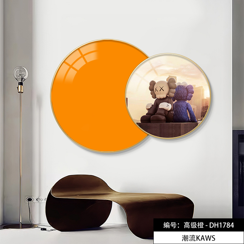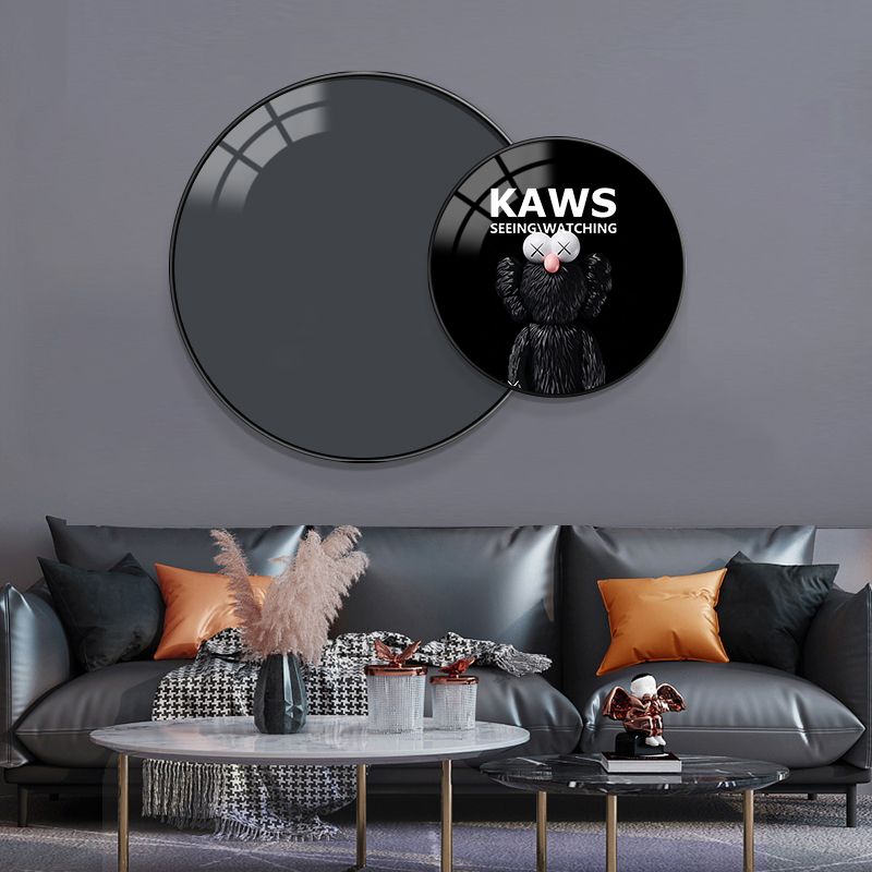 kaws hang painting modern light lavish dining room decoration painting Sesame Street Tide Card Round Creative double layer superimposed Xuan guan Mural