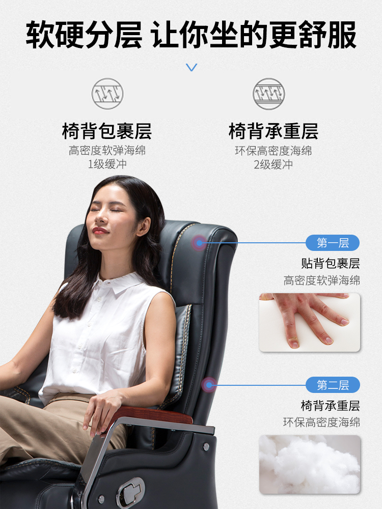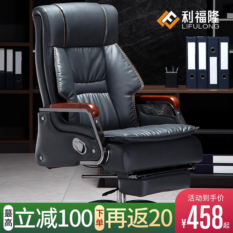 Leather boss chair office chair home comfortable lunch break chair reclining massage computer chair lifting swivel chair backrest chair