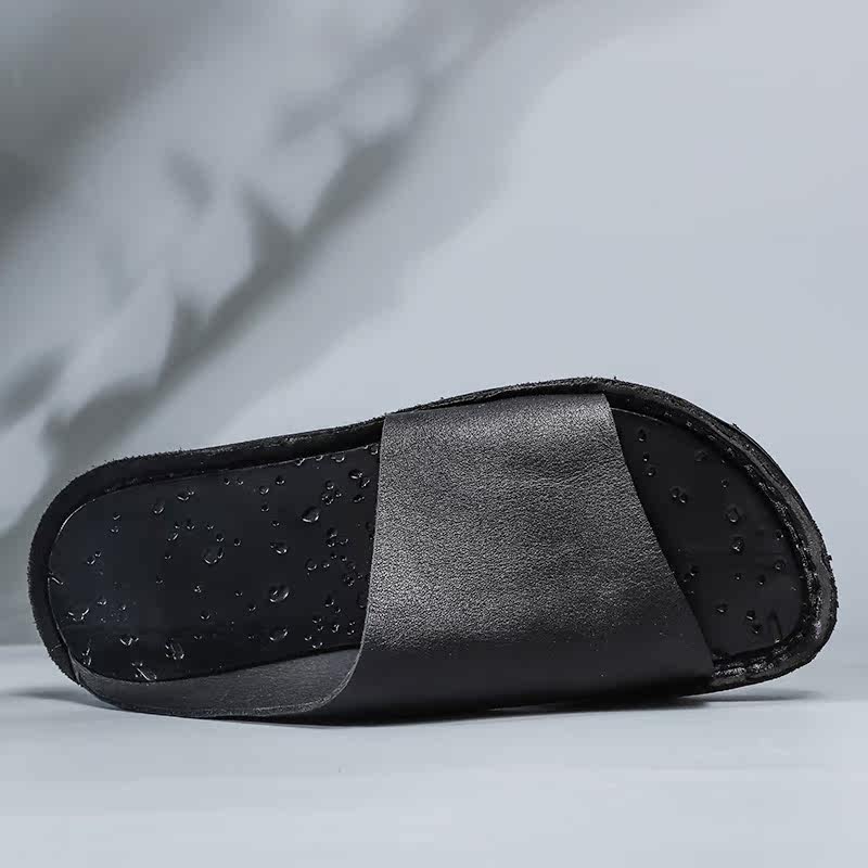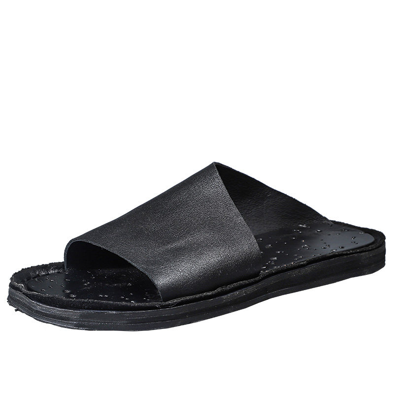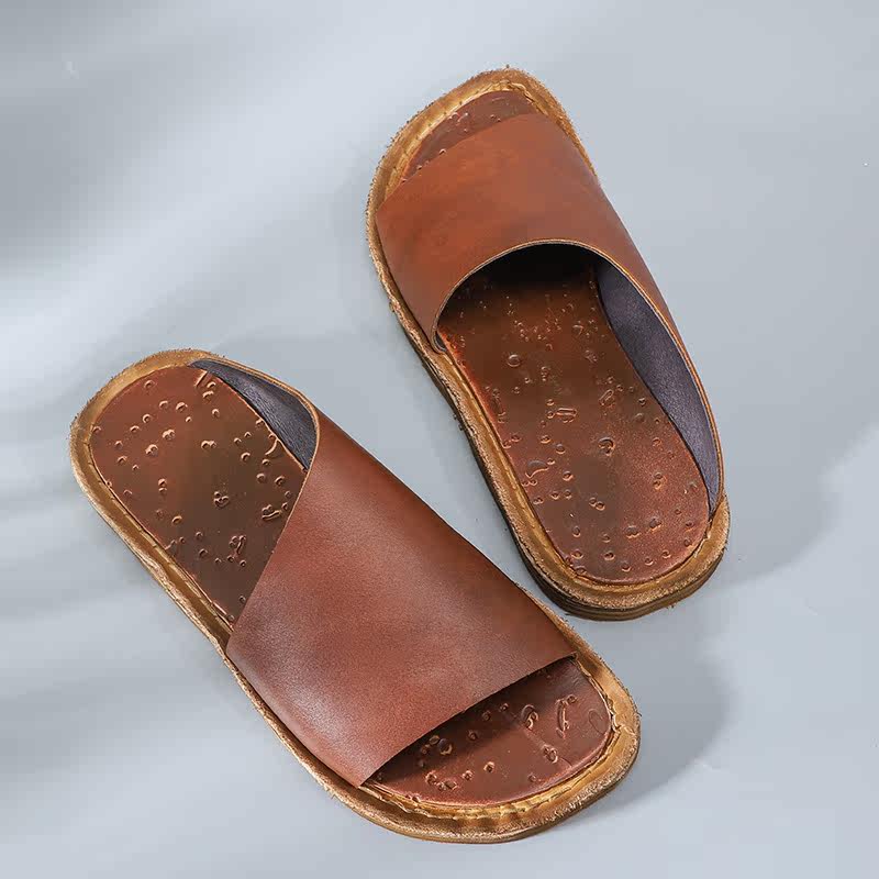 Minority original design handmade full cowhide retro slippers men's leather trendy outdoor half slippers one word slippers women