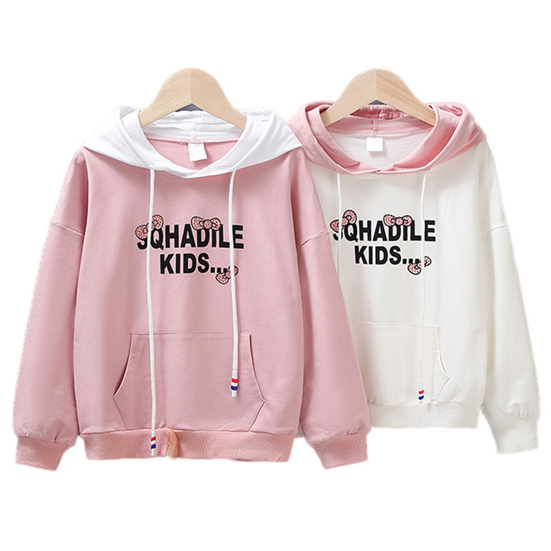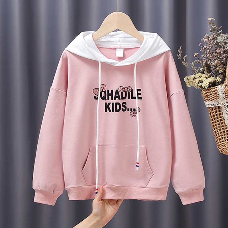 Girl's thick T-shirt spring autumn 2022 new thin children's spring dress Long sleeves CUHK Scout blouses with even cap spring wave