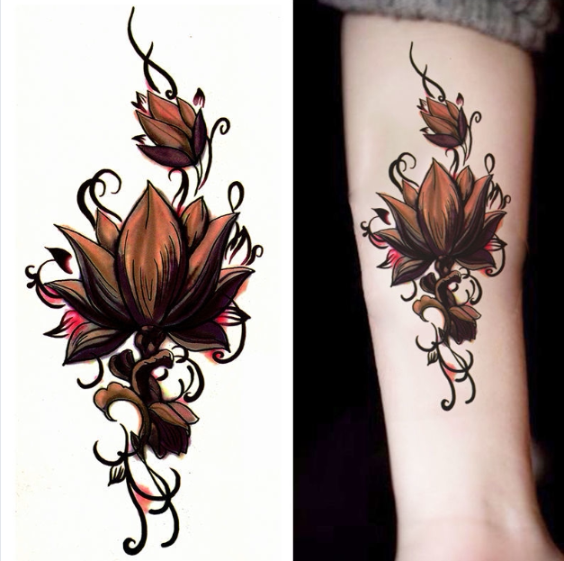 Dark Melanin Flowers Black & White Plum Blossom Flowers Ins Sexy Chest Calf Flowers Arm Waterproof Tattoo Stickers Women Lasting Sting