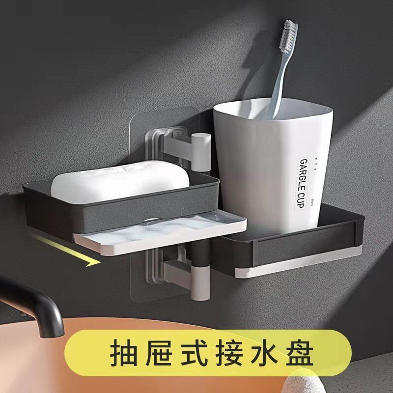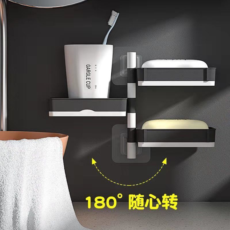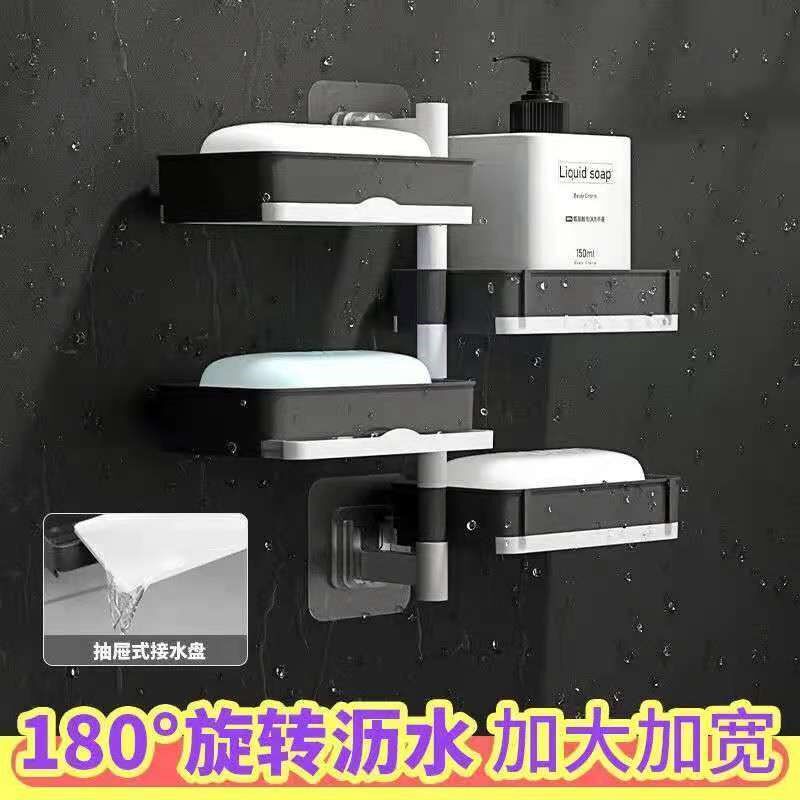 Creative punch-free drawer type rotatable soap box bathroom toilet multi-layer drain wall-mounted soap box
