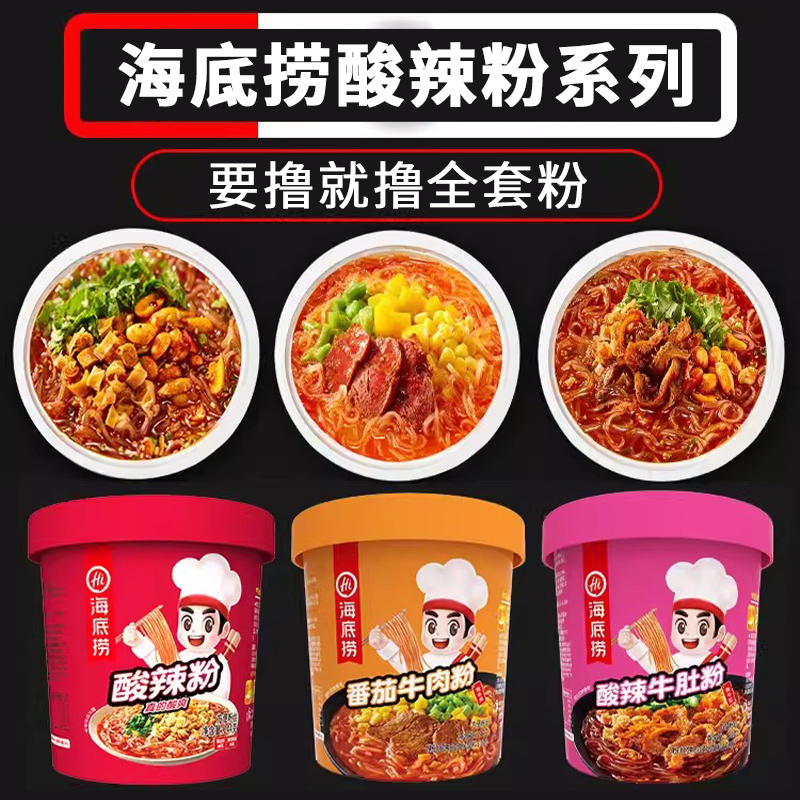 Haidilao Tomato Beef Powder Hot and Sour Noodles Instant Noodles Full Box Barrel Instant Noodles Night Supper Instant Noodles