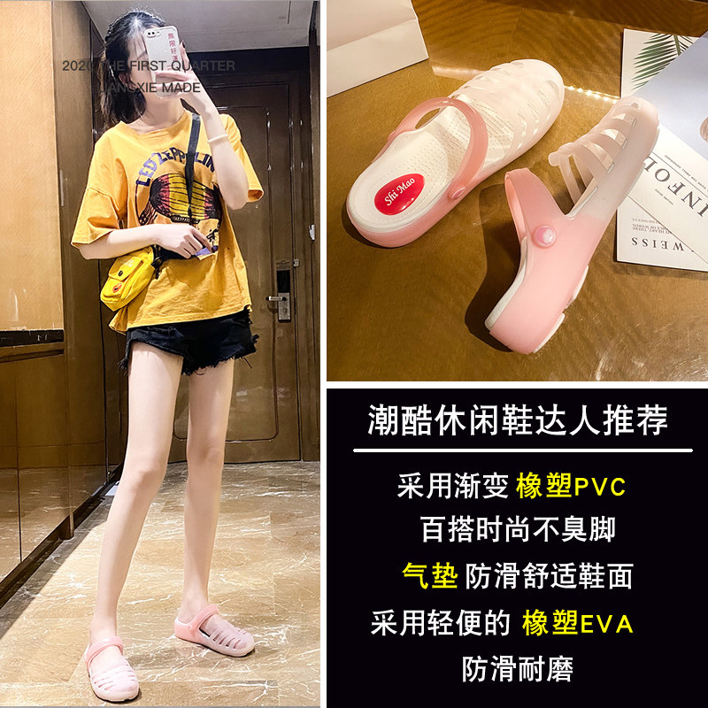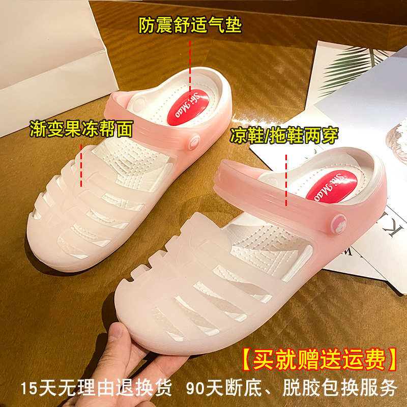 Jelly gradient 2021 all-match hole shoes women's summer thick bottom non-slip beach shoes thin slippers outer toe sandals
