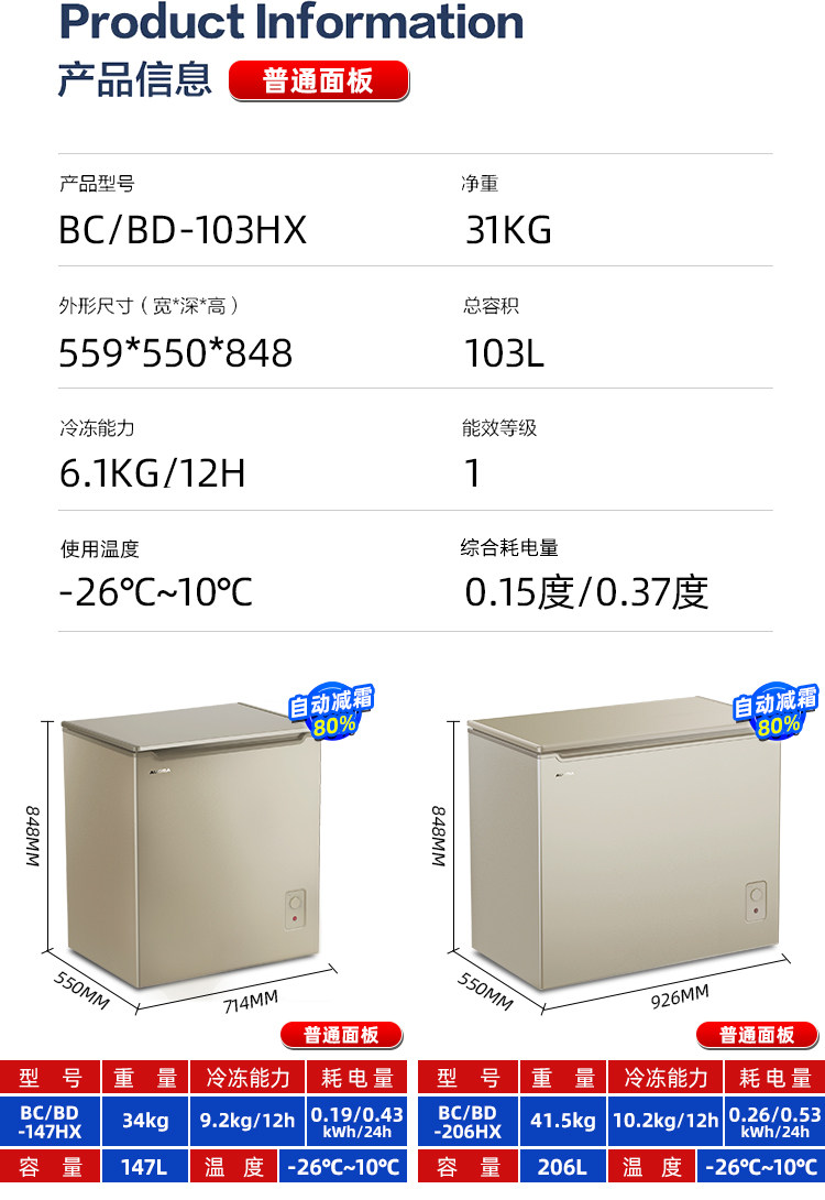 103 litres of negative 26-degree alloy panel 147 litres negative 26-degree alloy panel 206 litres negative 26-degree alloy panel 103 litres negative 26 degrees glass panel 147 litre negative 26