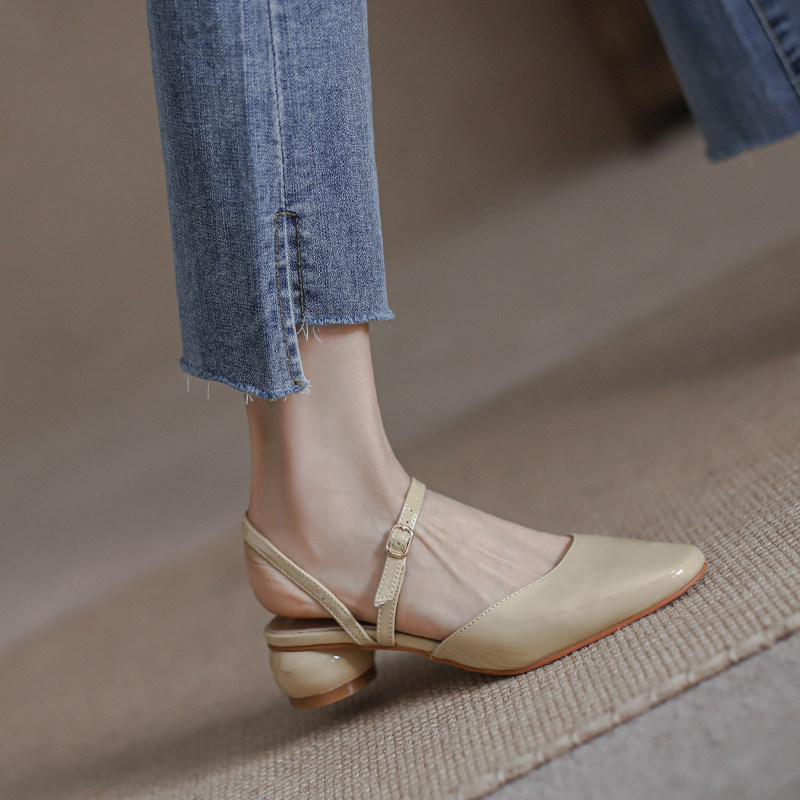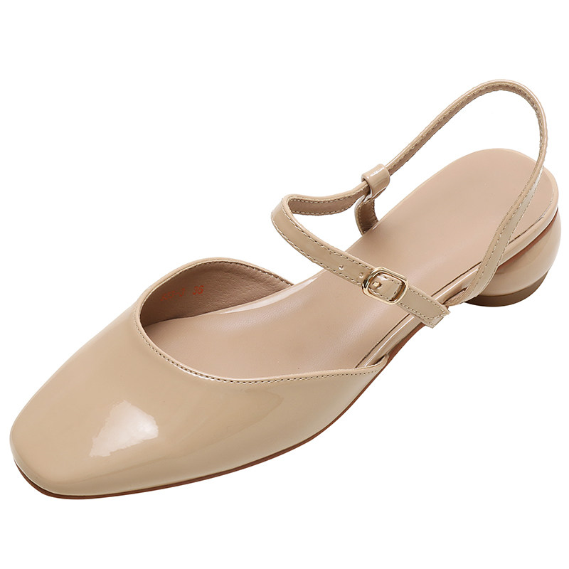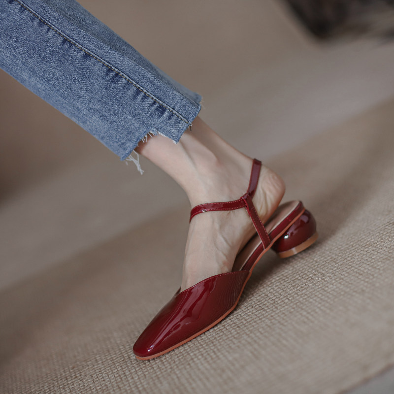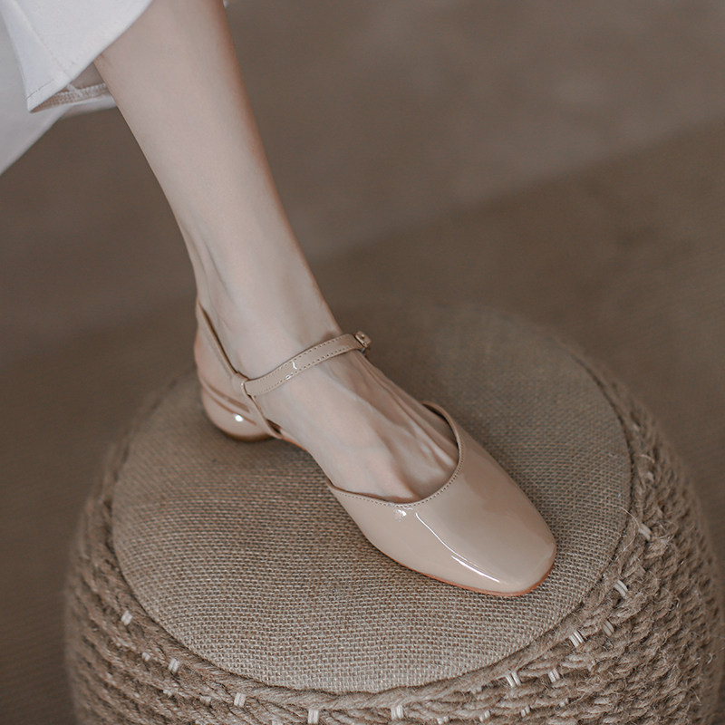 Mostarsea simple and gentle style ~ Baotou sandals female fairy style all-match medium-heeled square-toed patent leather thick-heeled shoes
