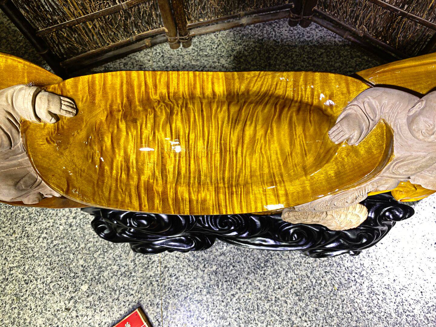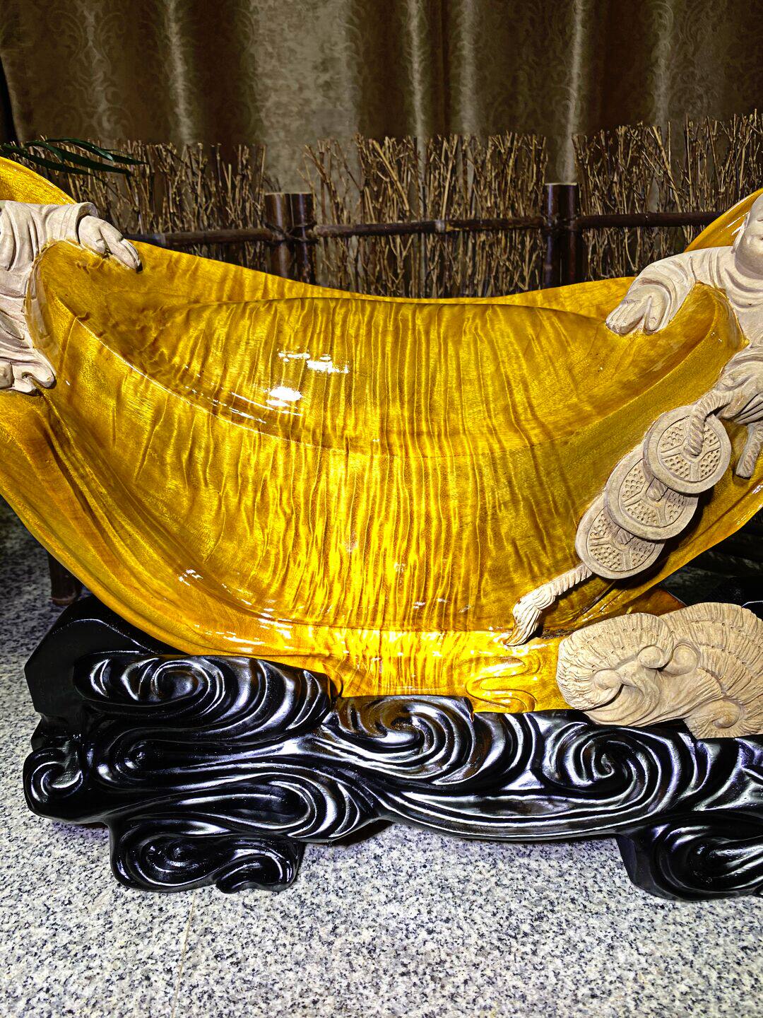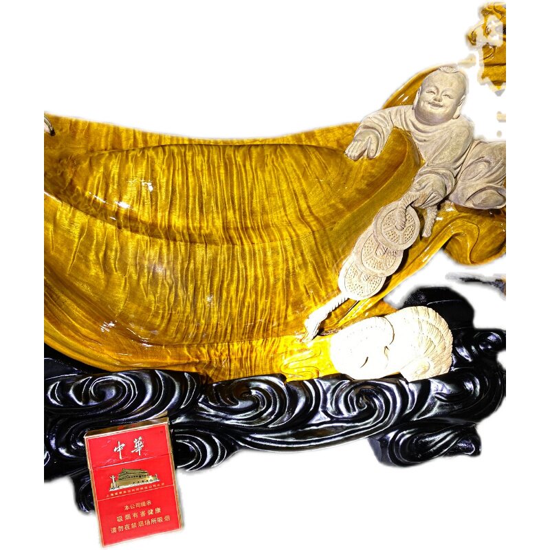 Cliff root carving ebony golden silk Nan Maitreya Buddha lucky boy living room decoration agarwood sandalwood carving small craft