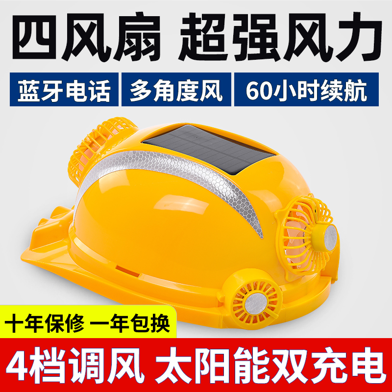 Solar Helmet with Fan Male Summer Site Rechargeable Smart Dual Quad Fan Helmet Hat Artifact