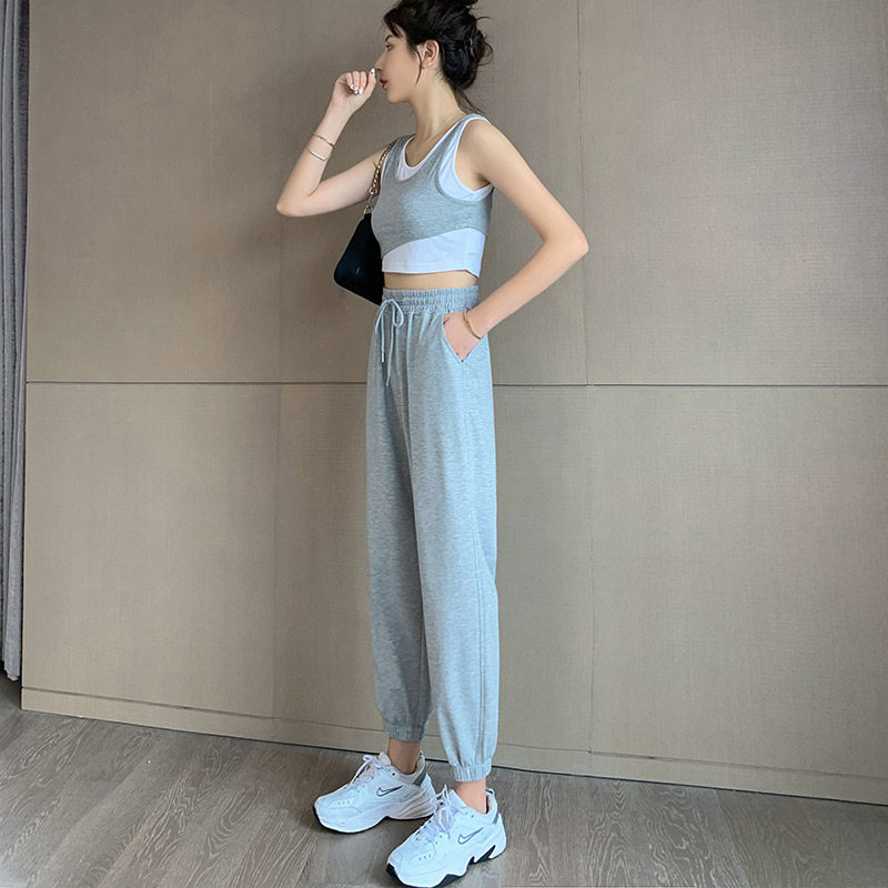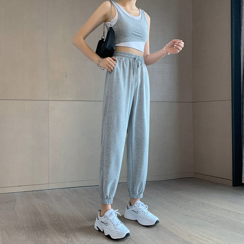 Grey sweatpants women's spring and autumn thin casual pants 2021 new small loose-fitting leggings straight autumn sweatpants