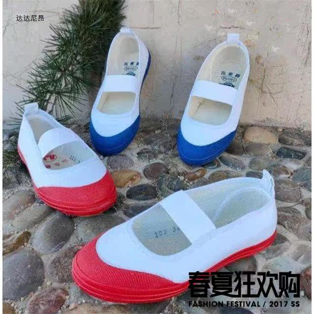 Red head Lutai children's white dance shoes non-slip performance shoes shoes boys white shoes gym shoes blue toe shoes