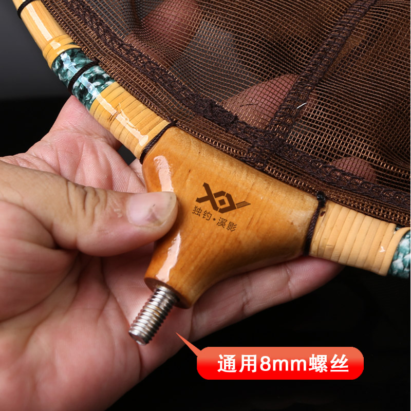 Alone fishing Xiying Japan imported ultra-light fishing net head pure hand-made rattan net head and broken jade handle fishing net rod net pocket