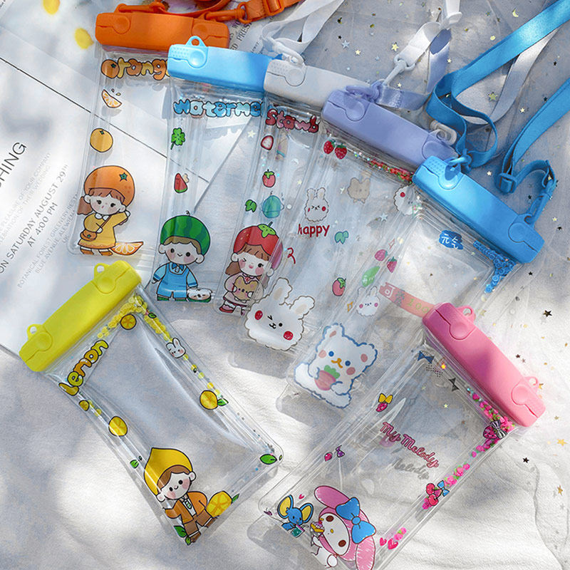 Cartoon Fruit Bright Sheet Streaming Sand Transparent Inflatable Cell Phone Waterproof Bag Huawei Apple Vivo Universal Swimming Diving Suit