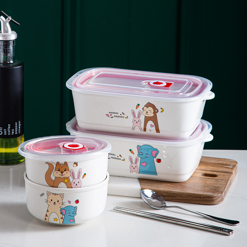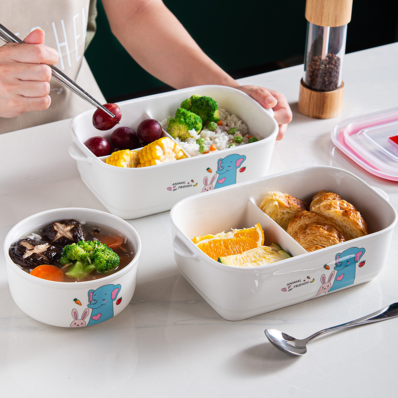 Lunch Box Office Work Cute Microwave Oven Heating Special High Face Value Students With Lid Seal Divided Ceramic Lunch Box