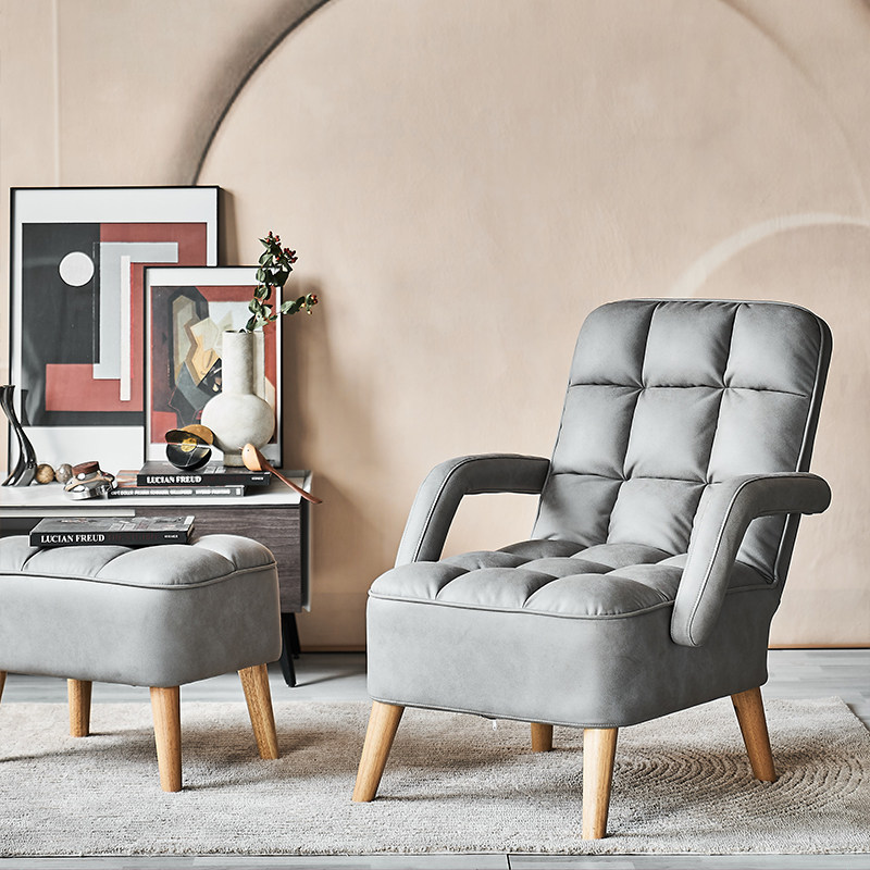 Gu's home function Five-gear adjustment with head solid wood footed tech cloth sofa-chair living-room balcony Leisure XJ preparation