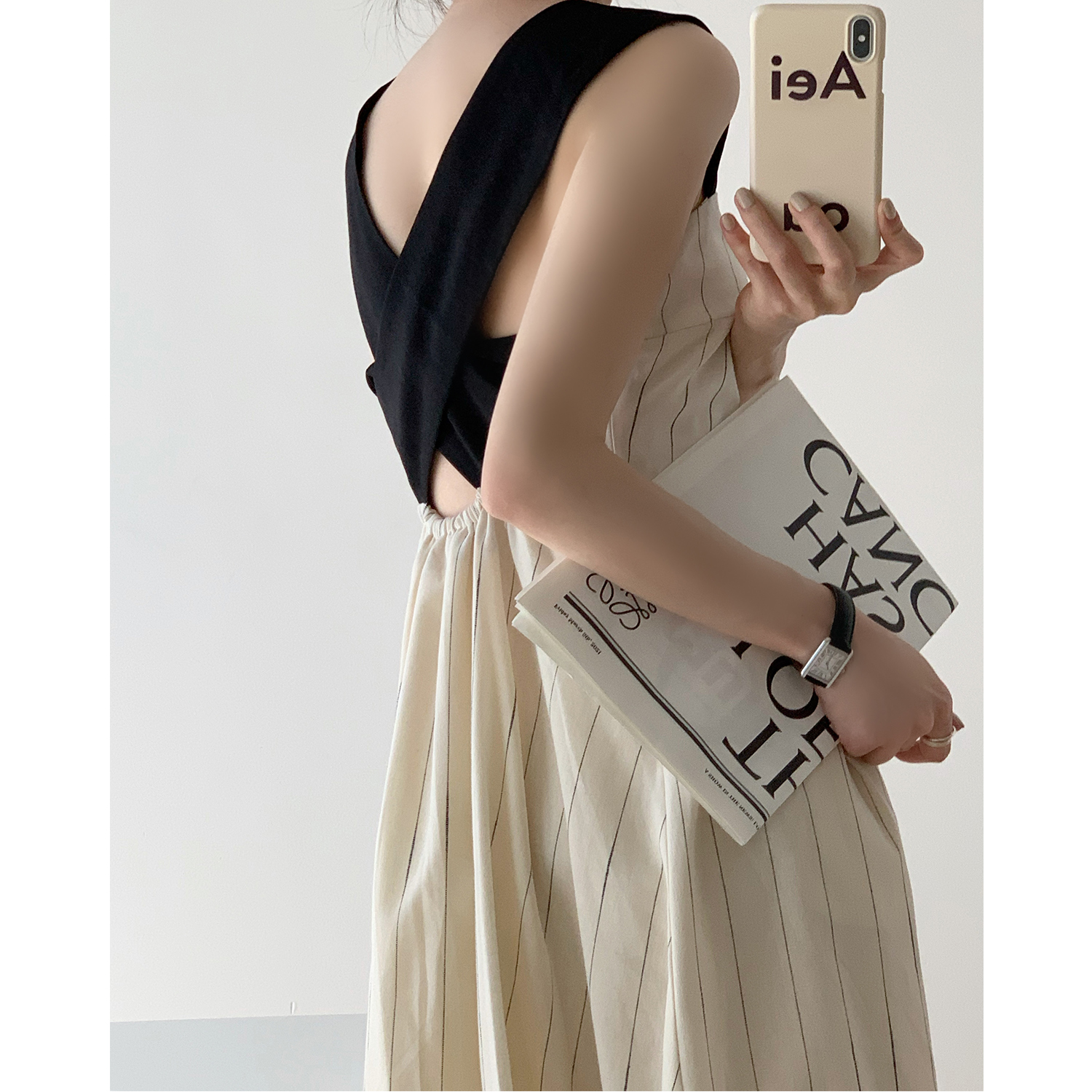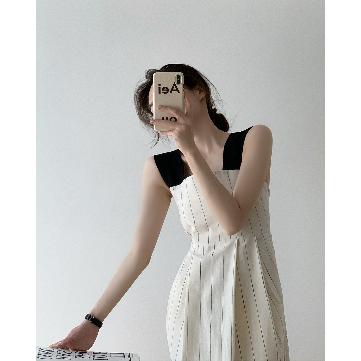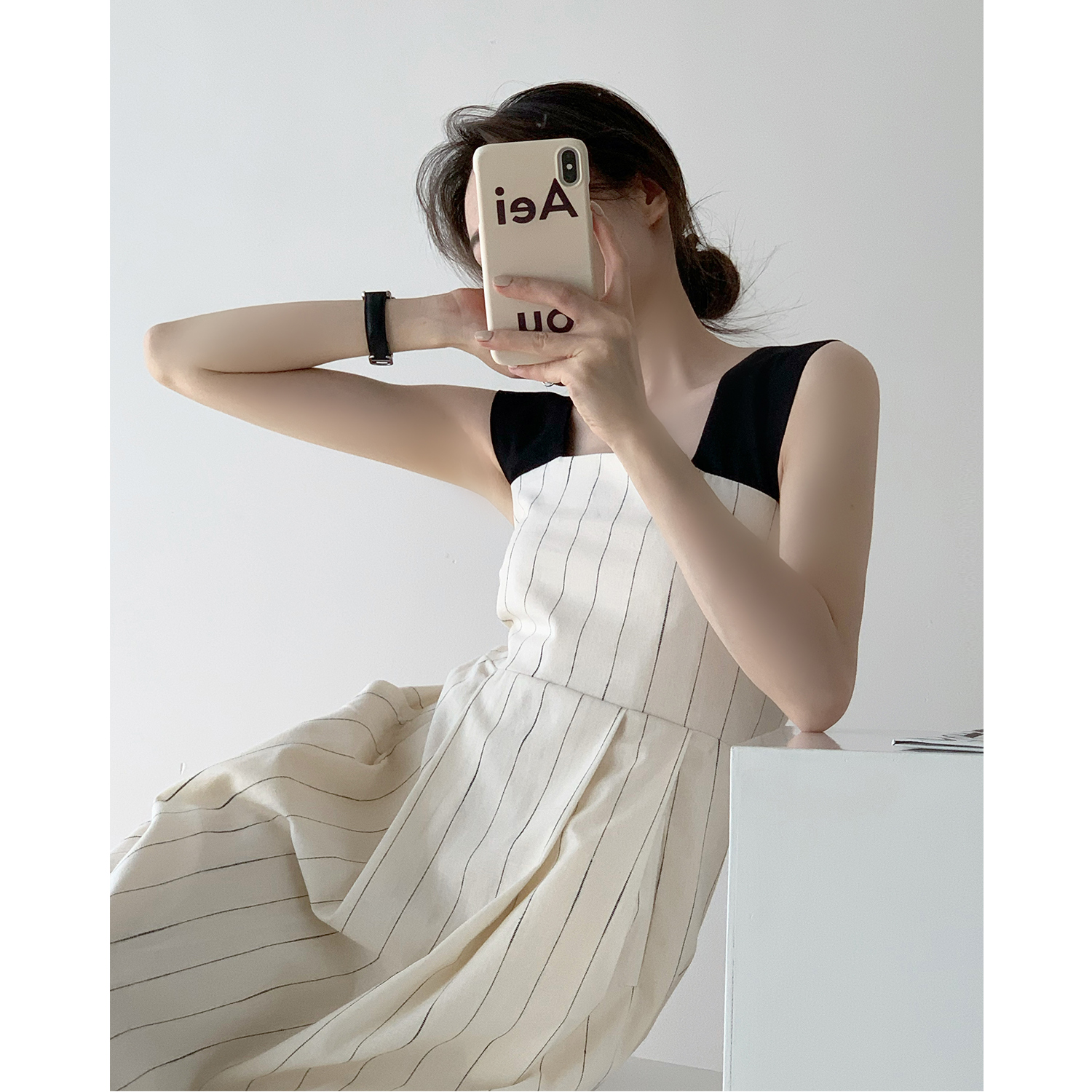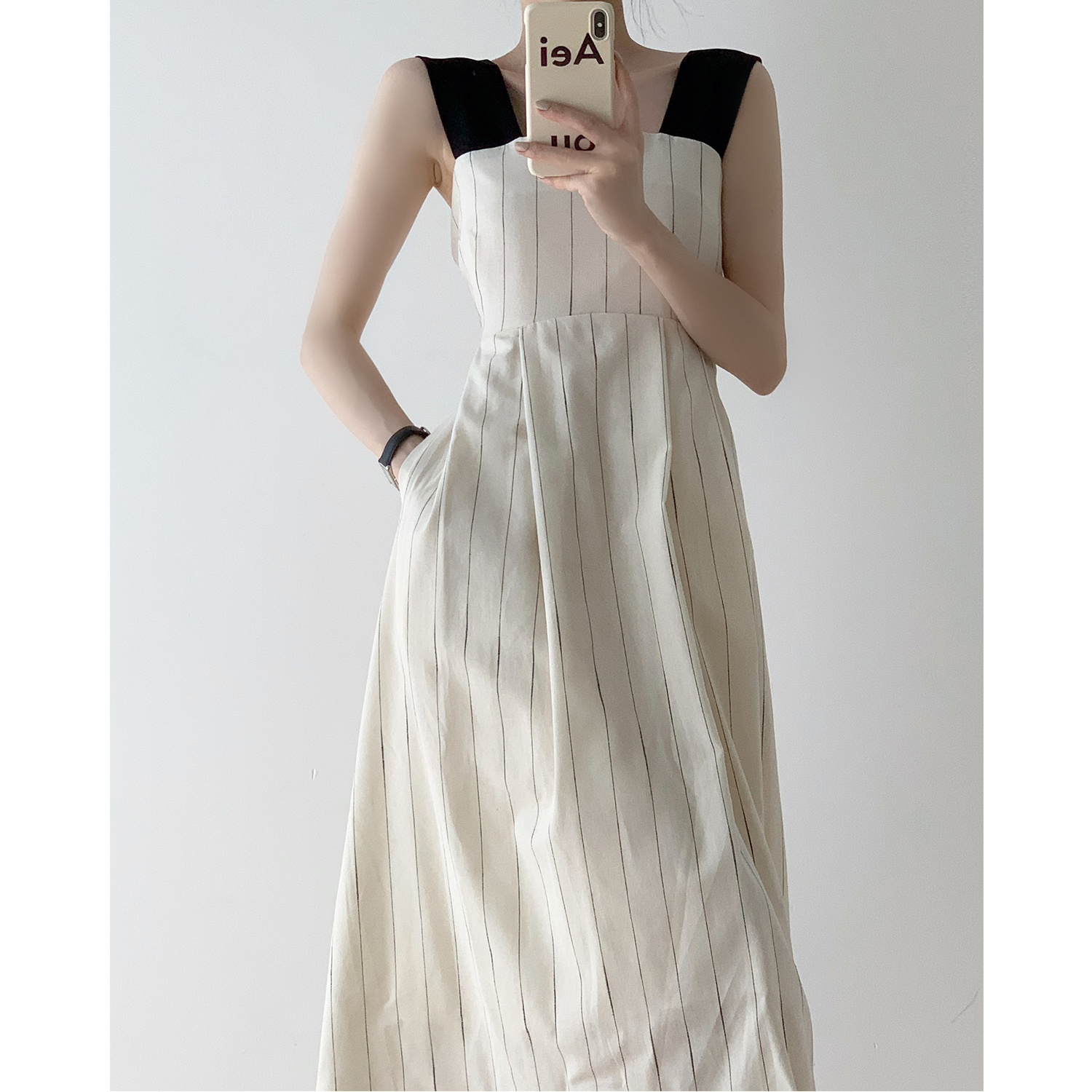 Dai Yutong same style 2022 super Xian Sen series waist thin French niche striped baby bag suspender dress female summer