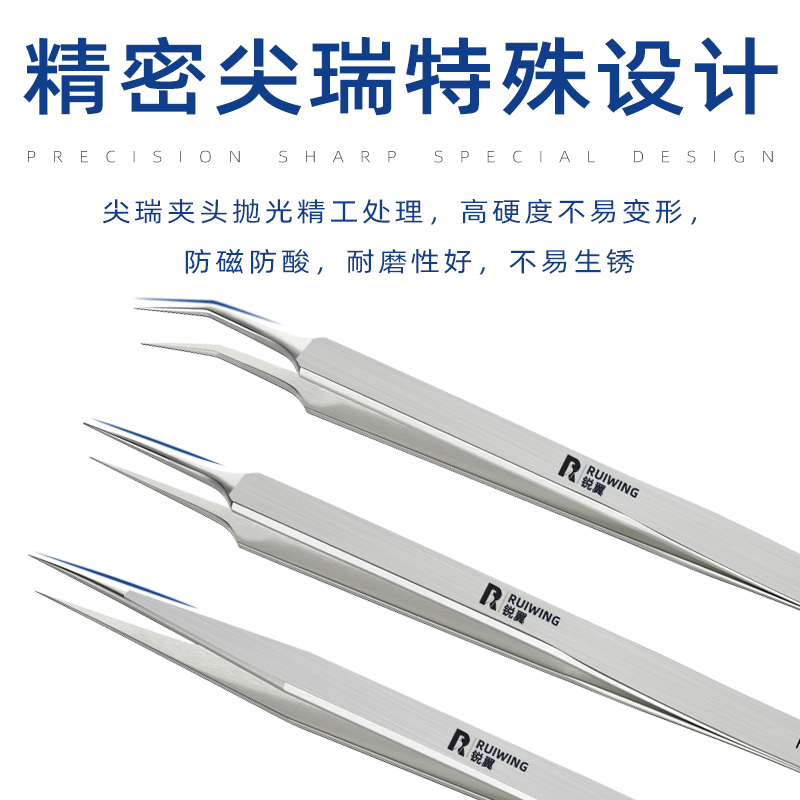 Reick wing to grow high precision stainless steel anti-static tweezers Mobile phone repair bird's nest pick hair straight head clamp