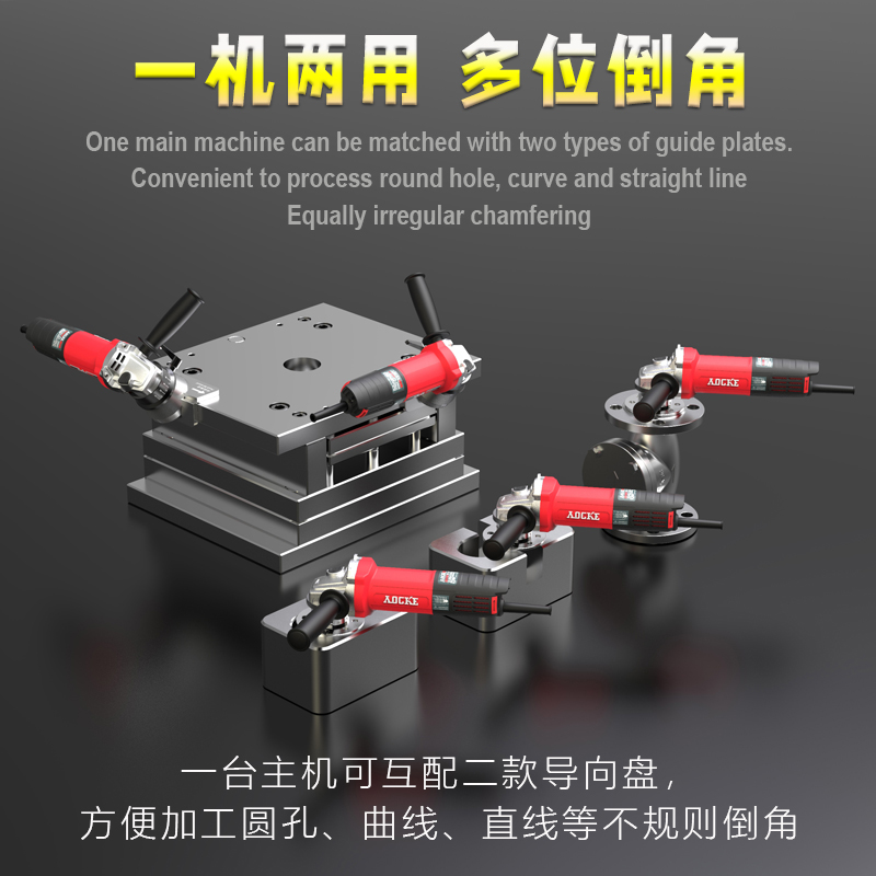 Electric hand-held chamfering machine Brushless mold arc hole curve R angle to C edge burring metal portable polishing machine