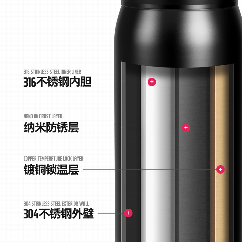 Germany EDISH high-grade thermos large capacity men and women 316 stainless steel portable water cup lettering teacup