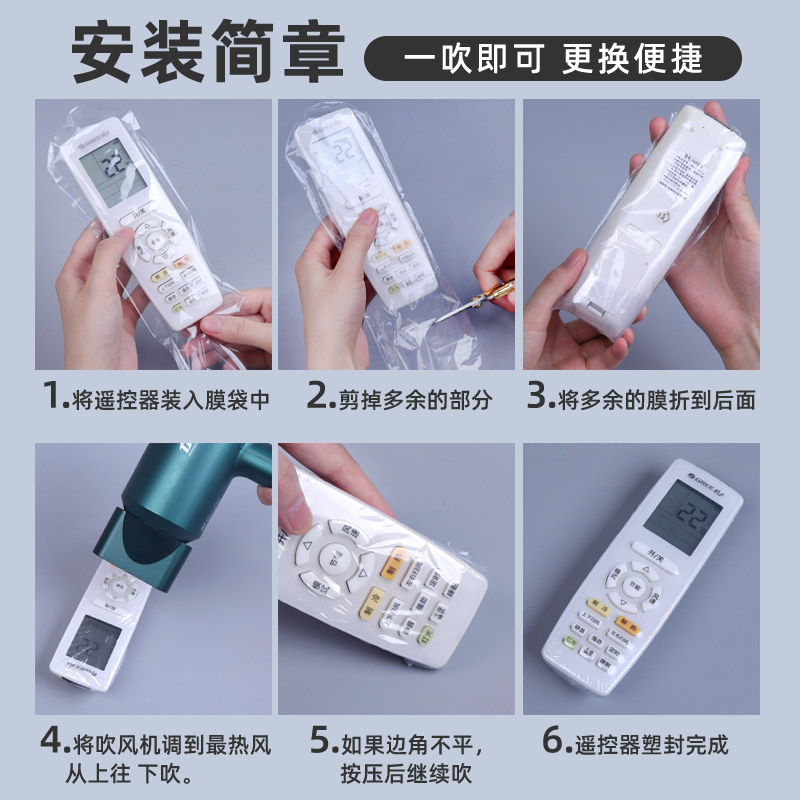 Remote control protective cover heat shrinkable film shrink bag air conditioner TV remote control board film general purpose home millet Gree beauty Haier size model plastic sealed transparent film remote control dust cover