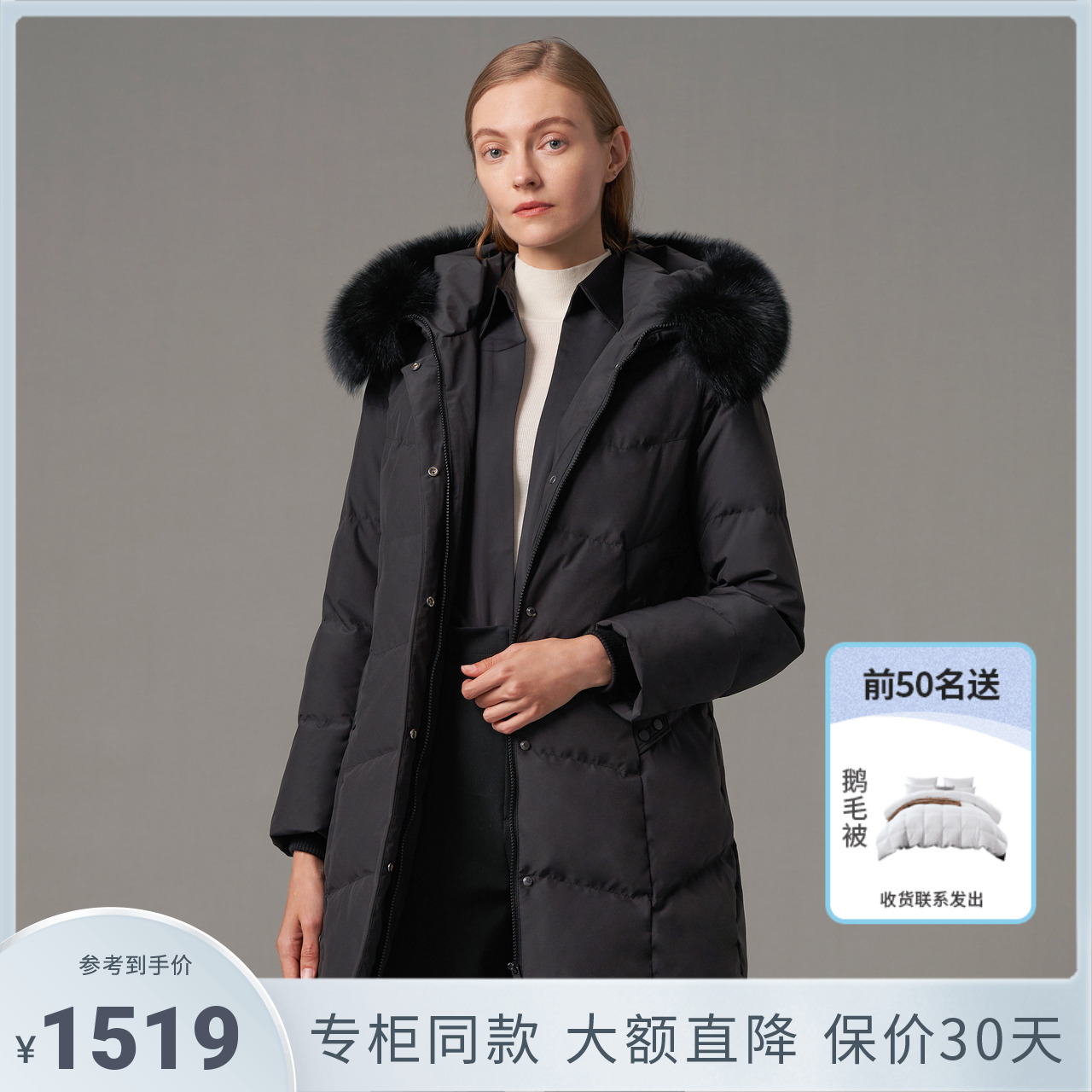 Bourgendon down dress Women's mid-long version 2021 The new fox fur collar fix the winter official website B10145126