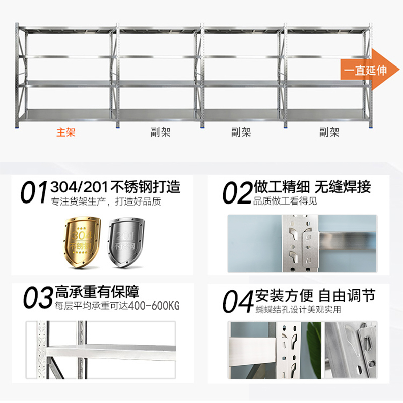 304 stainless steel heavy warehouse storage shelves cold storage kitchen basement garage multi - layer medium storage shelves