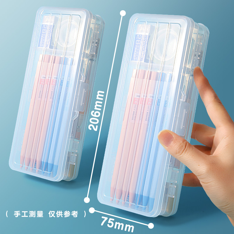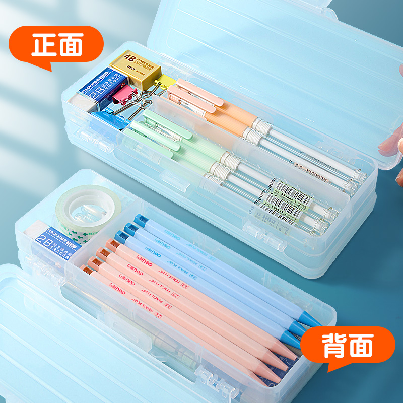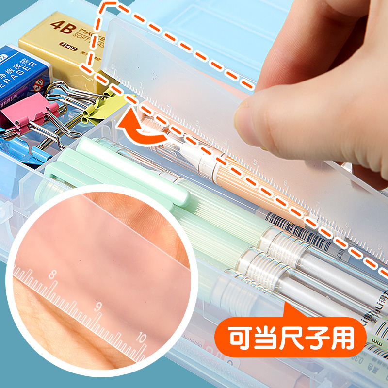 Pencil case containing pencil case lead pencil case Bag Transparent Creative Net Red Junior High School Elementary School Student Large Capacity Pen Bag Double double women's brief plastic day series Korean version with separator ruler Sub-bar lattice