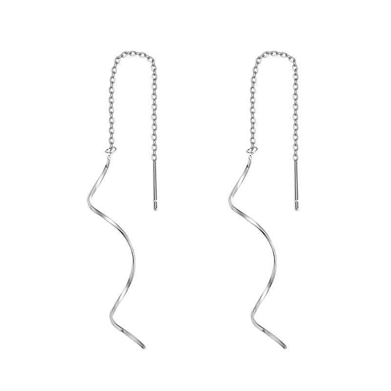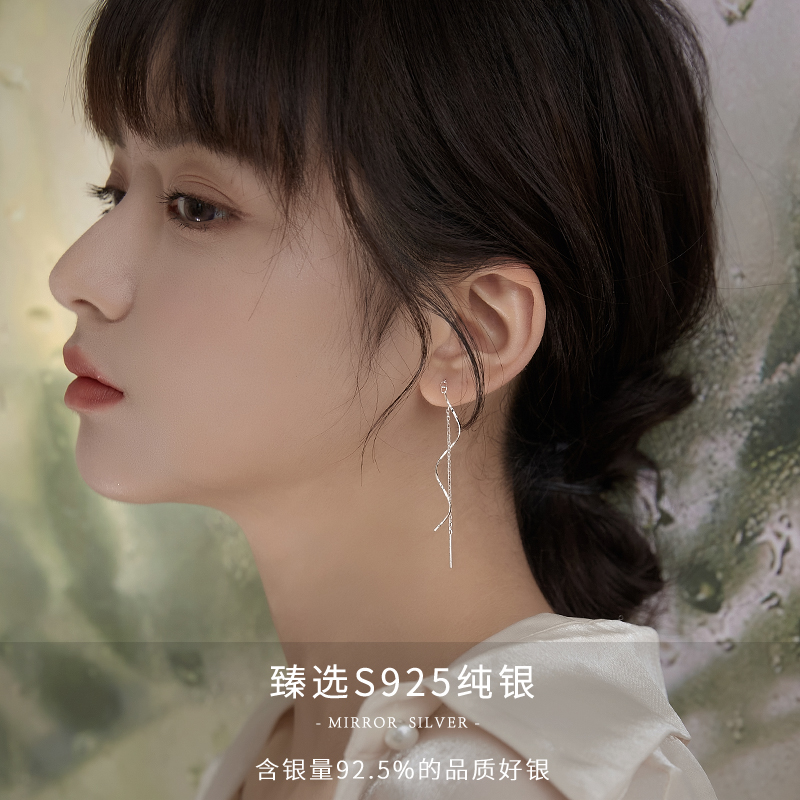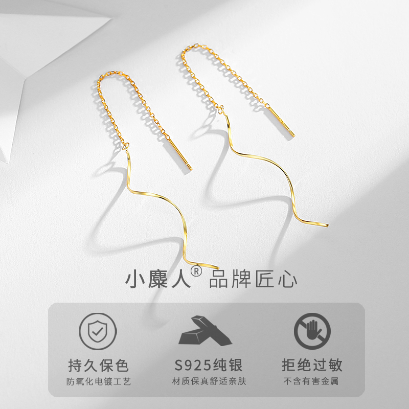Little Elk Man 925ins wind wave long ear line female fringe earrings niche design stud earrings net red new model