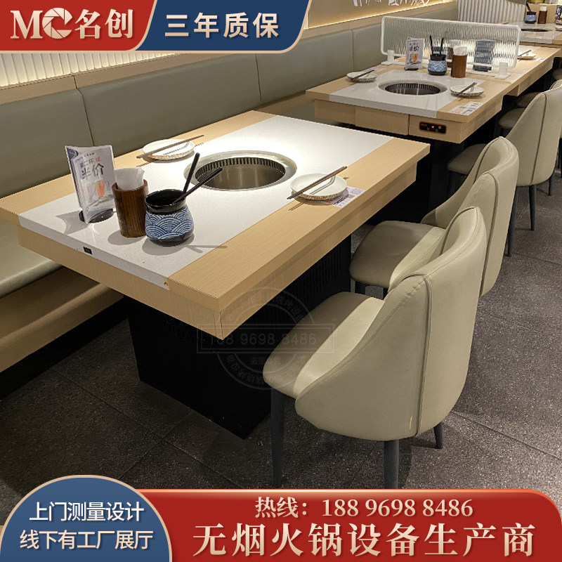 Custom seafloor fishing oven marble Lower smoke exhaust Smoke-free hot pot table and chairs Combined purification equipment Commercial manufacturer-Taobao