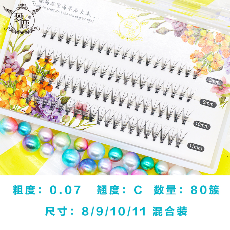 Dream deer false eyelashes female supernatural single cluster hair self-grafting multi-size mixed camellia C Qiaoqing