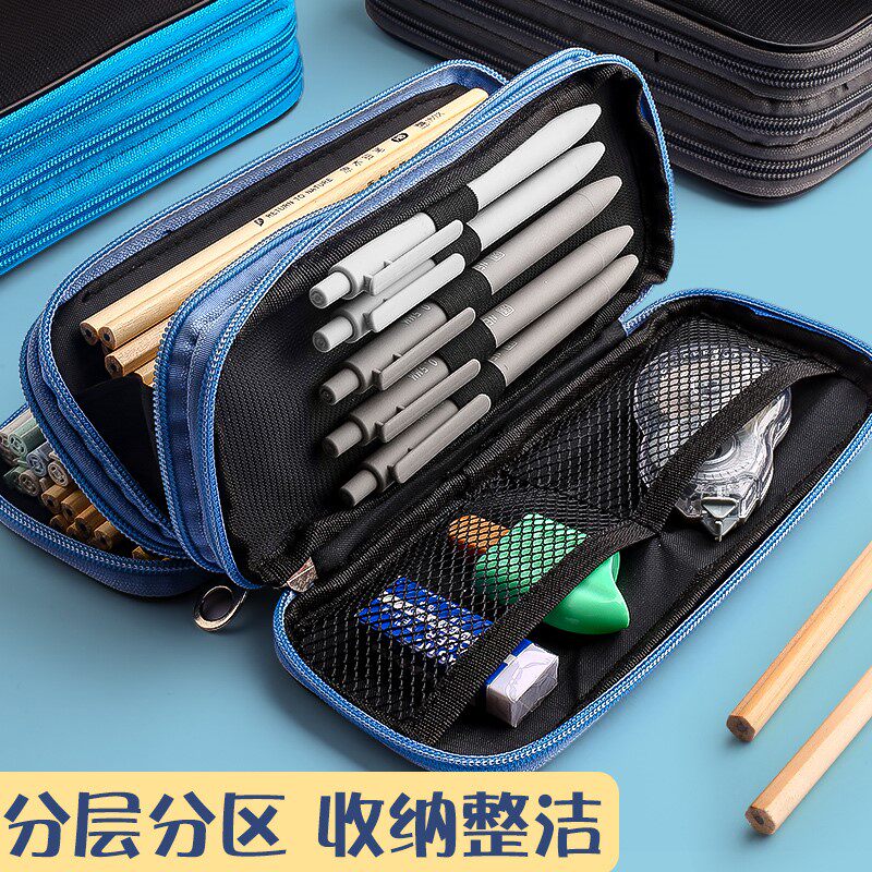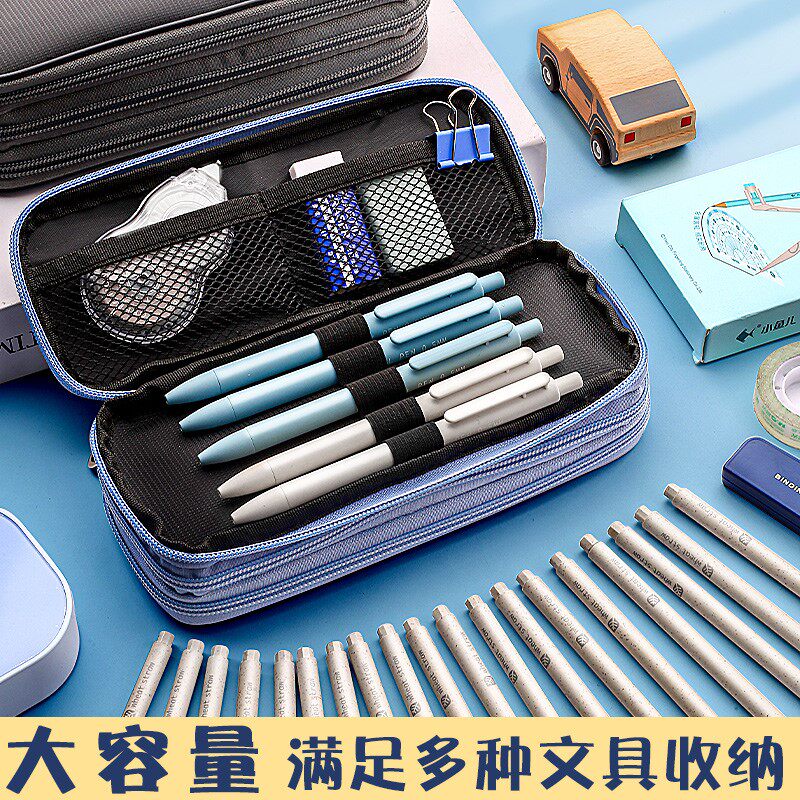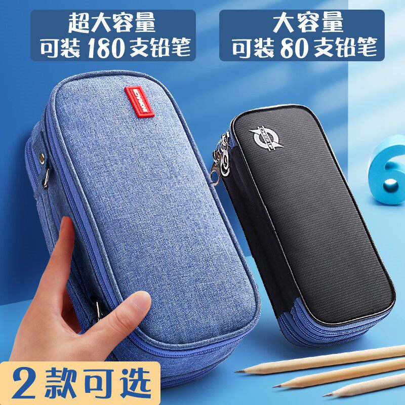 Pencil bag male junior high school student simple super large capacity primary school pencil bag stationery box creative middle school student multi-functional multi-layer boy canvas high school student college pencil case children boy retro style
