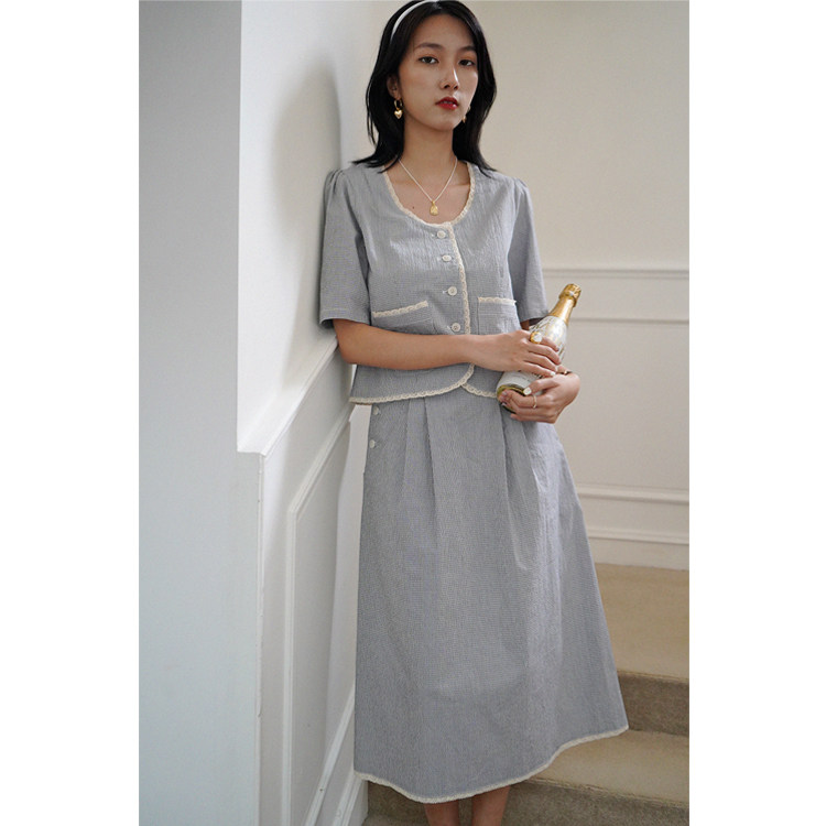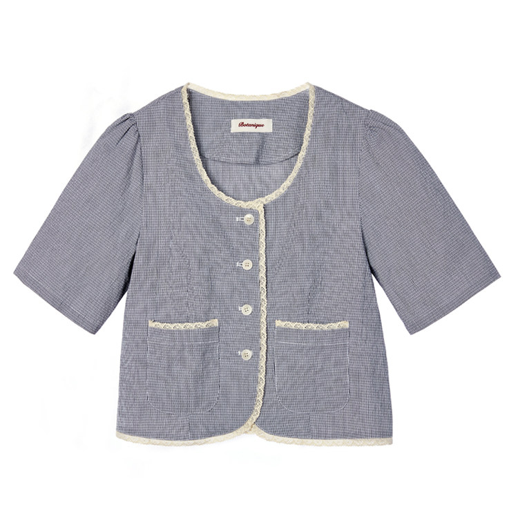 Botanique botanical original design French elegant lady striped lace patchwork top suit shirt