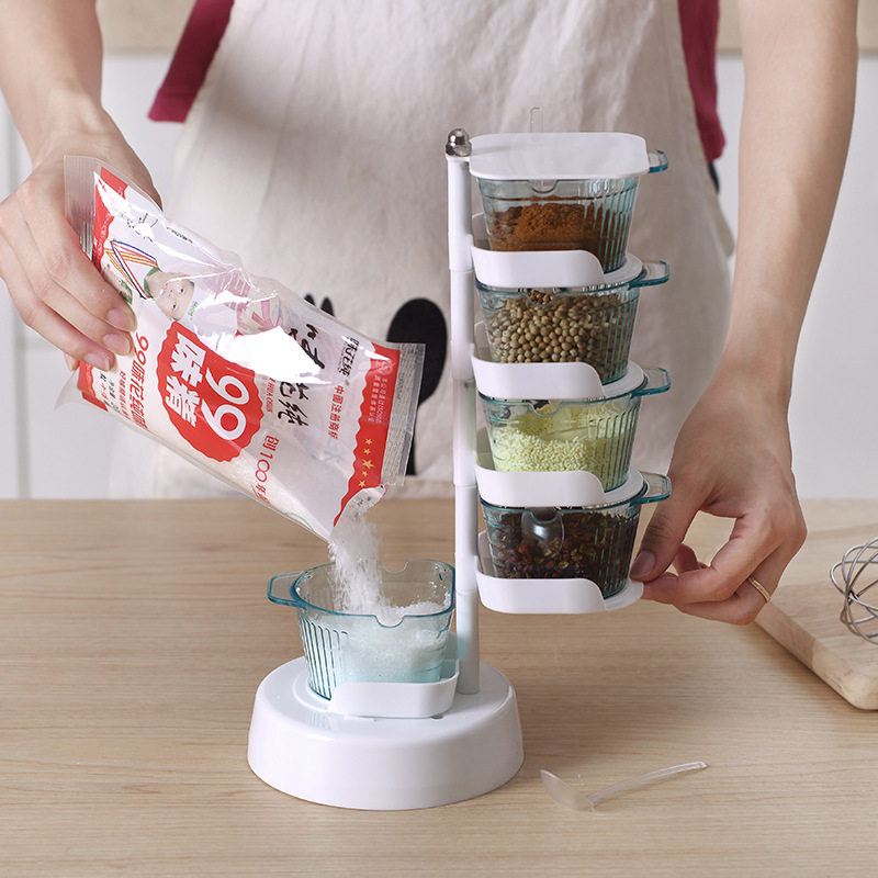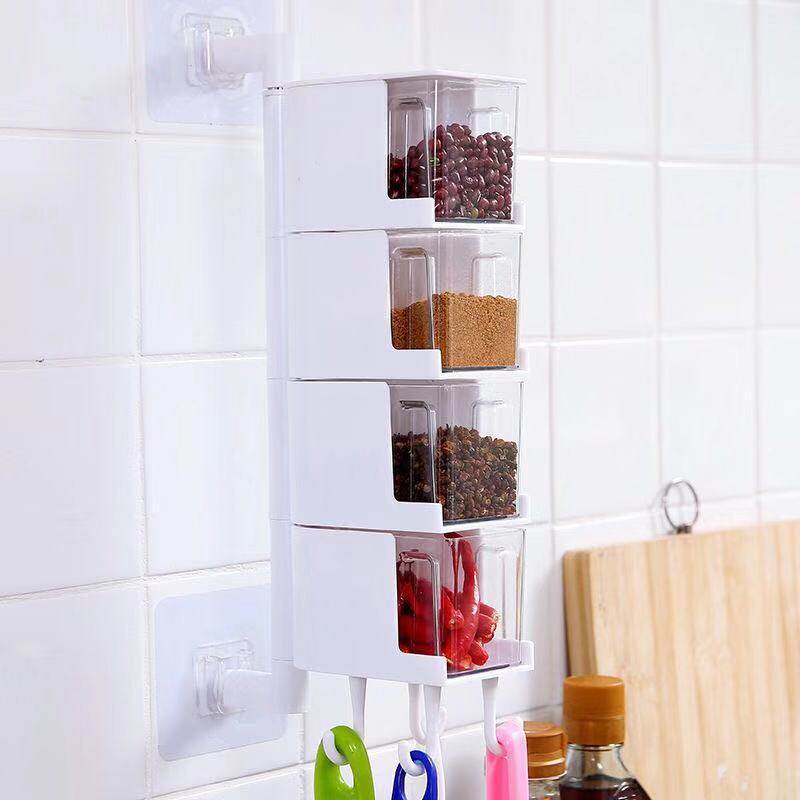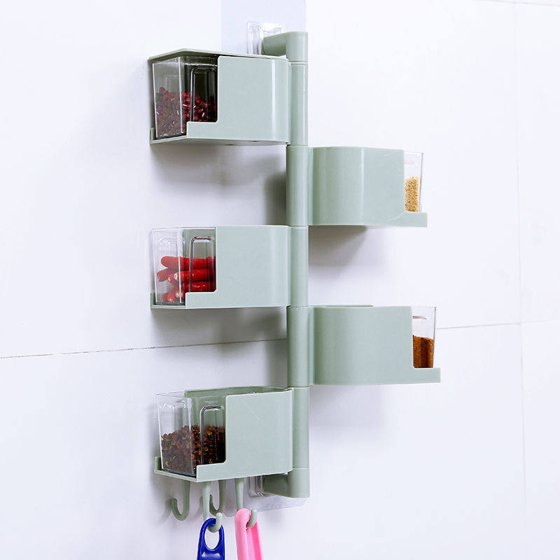 Seasoning box household sticky rack-mounted seasoning box rotary moisture-proof seasoning tank salt kitchen punch-free wall-mounted
