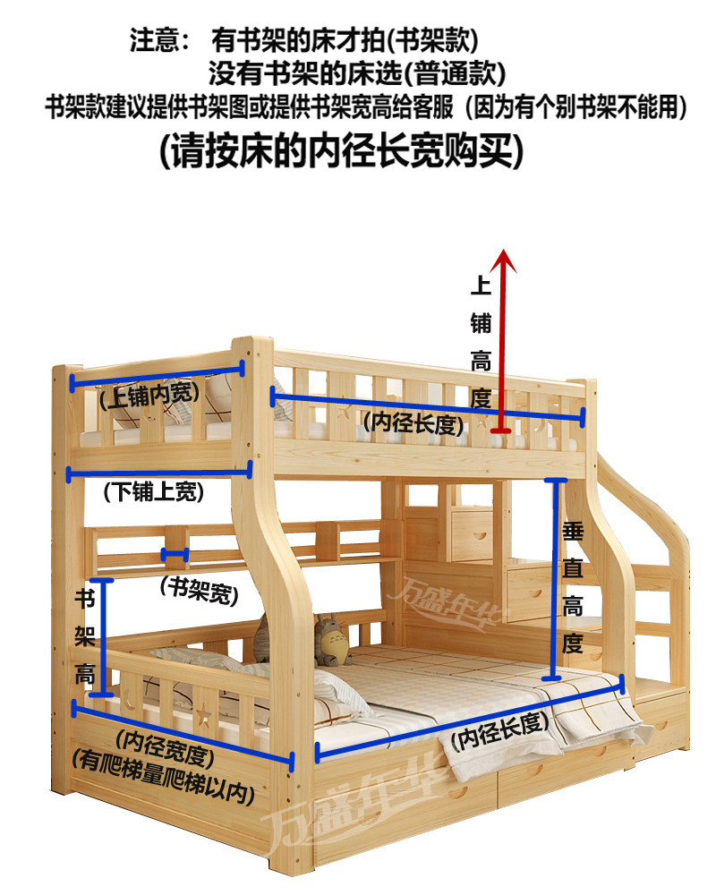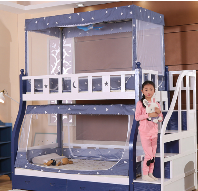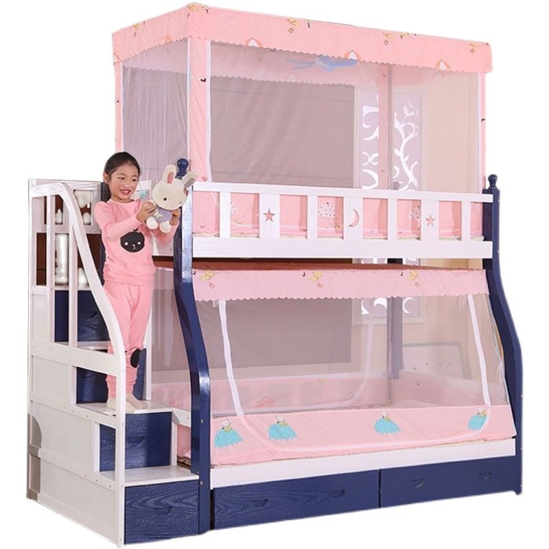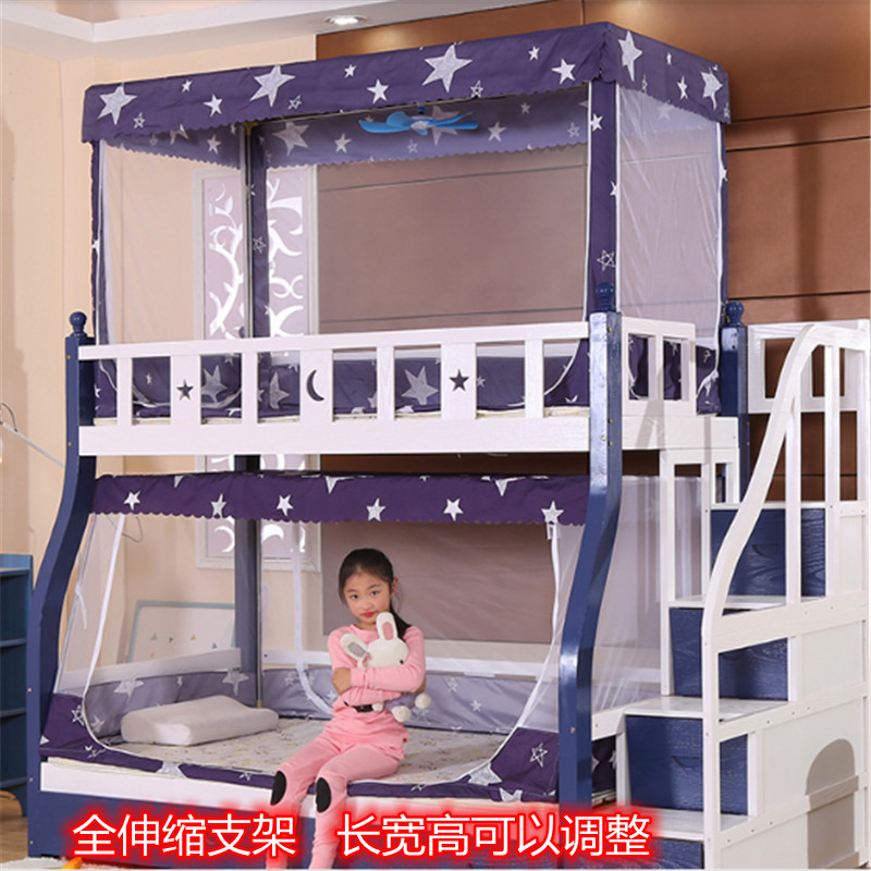 Mother-of-child mosquito net full telescopic bracket upper and lower trapezoidal double-decker high and low bed 1 2 meters children's blackout bookshelf 1 5