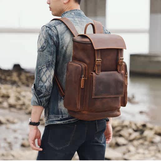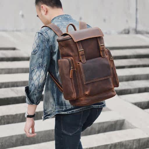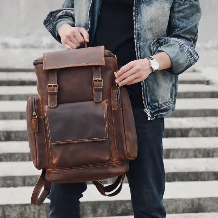 Headlayer Bull Leather Men's Double Shoulder Bag Business Trip Travel Bag LEATHER TRAVEL CASUAL RETRO TRAVEL BAG