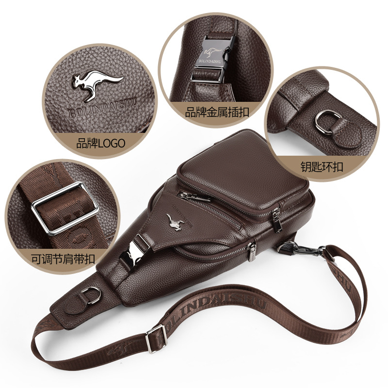 Berlin kangaroo men's chest bag first layer cowhide men's messenger bag casual shoulder bag men's leather backpack men's small bag
