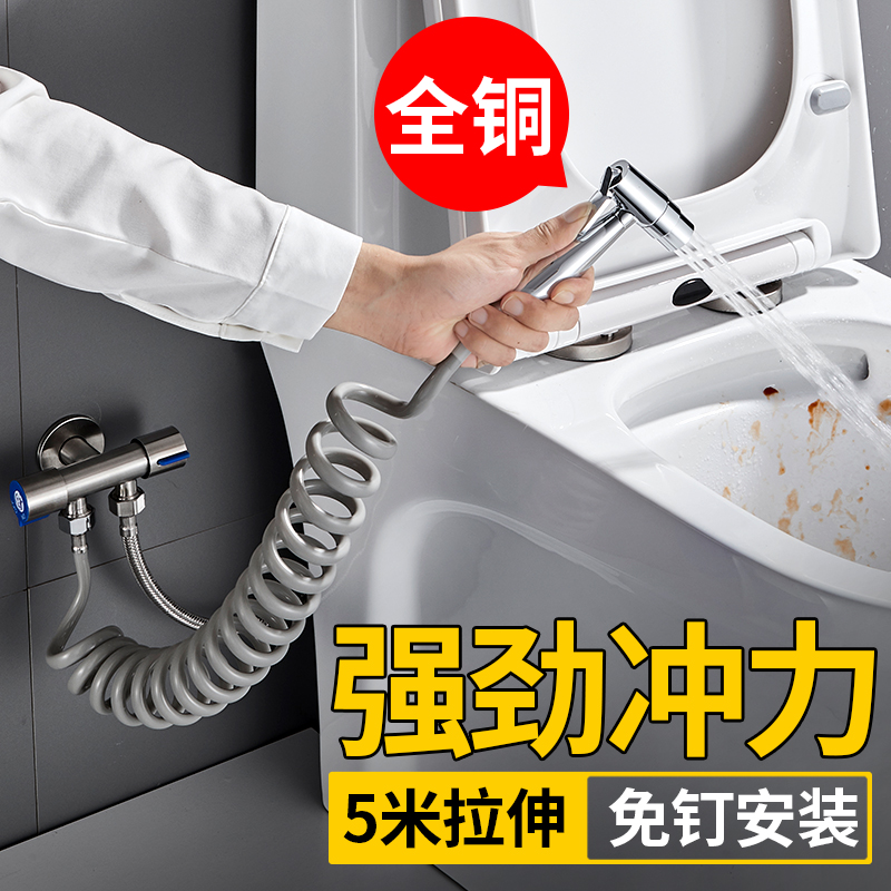 All-copper toilet spray gun double stall water out mode