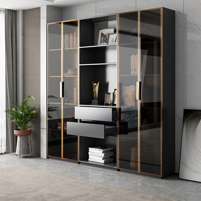 Light luxury bookcase Italian minimalist glass door combination display cabinet household office storage modern simple bookcase