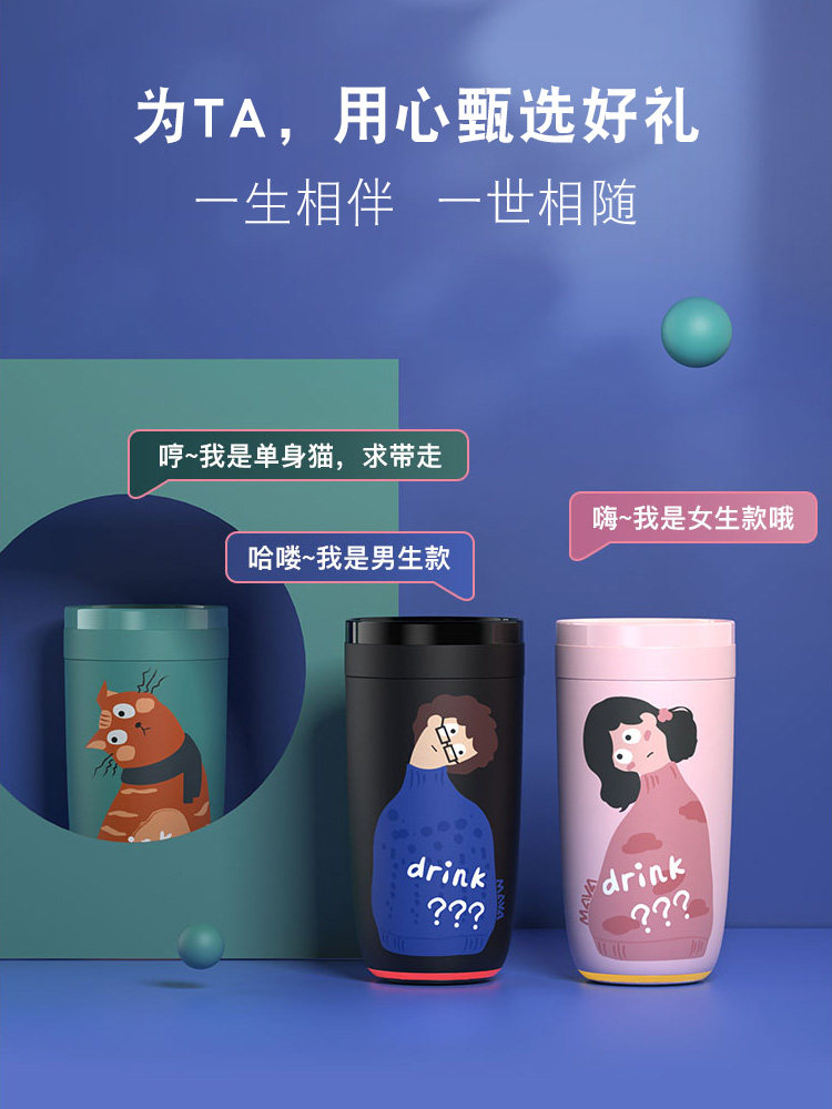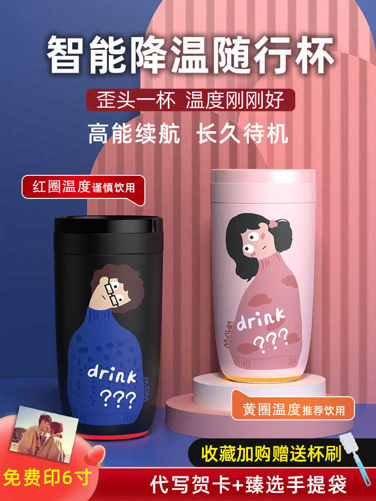 A pair of smart cooling cups, gentleman black, lady pink, exquisite lighting gift box Smart cooling cups, gentleman black, cute green pair, exquisite lighting gift box Smart cooling cups, cute green lady pink pair, lights