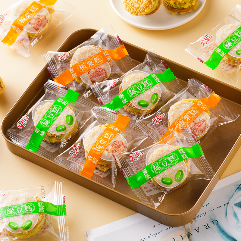 Mung bean cake chestnut shortcake traditional old-fashioned pastry heart handmade independent packaging delicious casual snacks flagship store