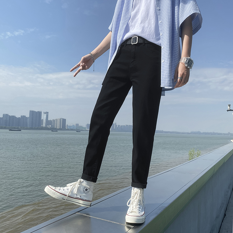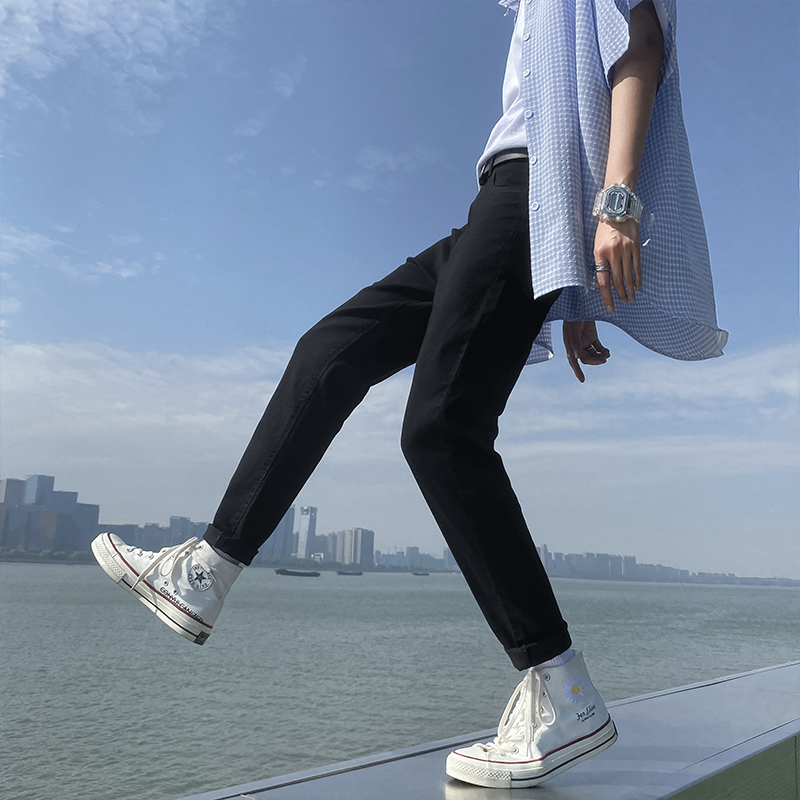 Summer nine-point jeans men's Korean version of the trend of slim feet 2021 new Hong Kong style all-match men's pants