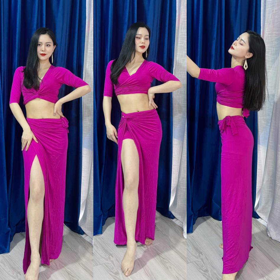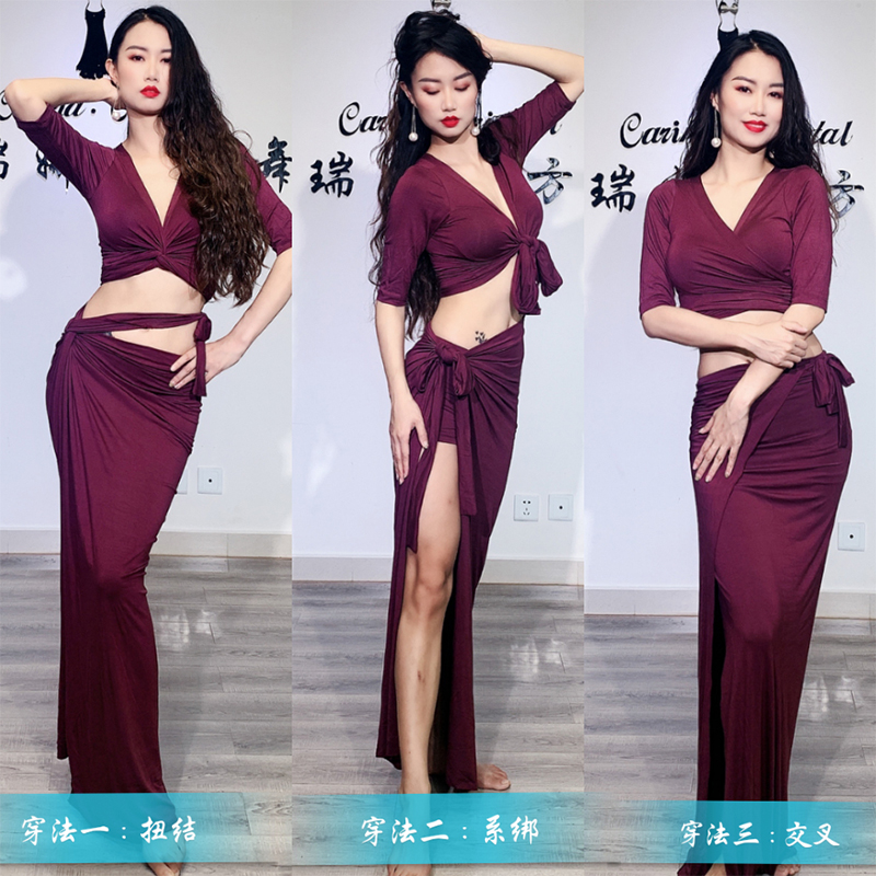 SWEGAL Belly Dance Practice Modale Begs Department Tie Sexy Big Size Practice Suit Suction Sweaty Summer Clothing 10 Color Electrilogy